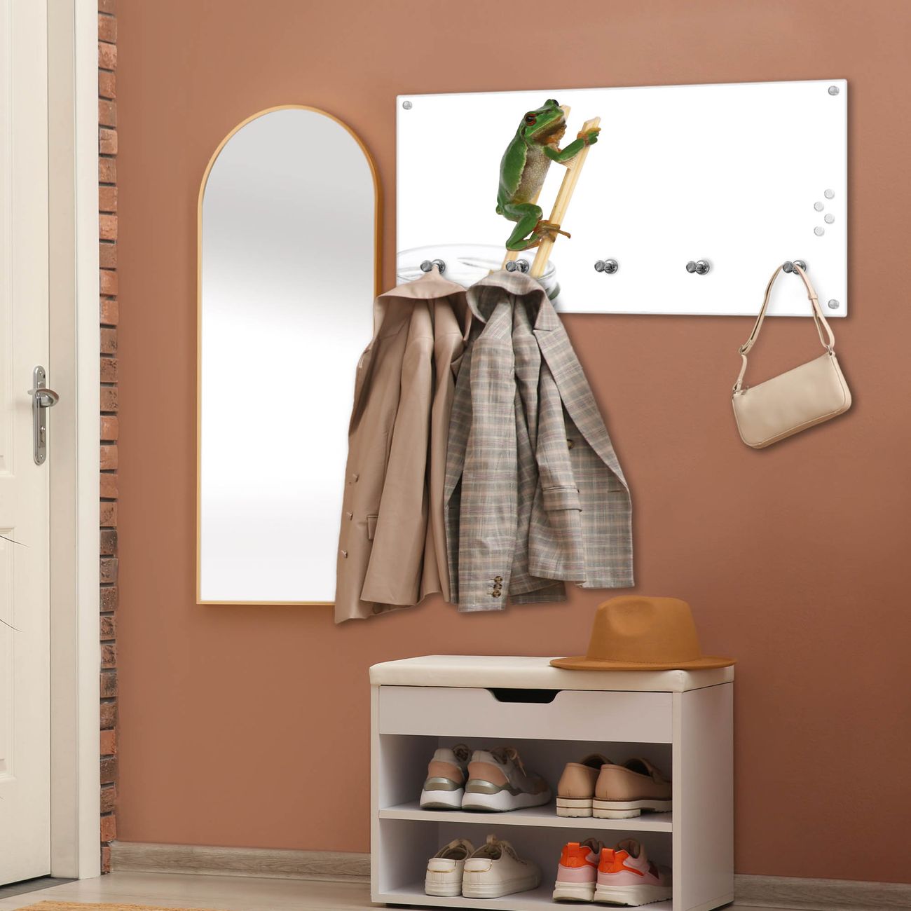 Wandgarderobe Glas 80x40cm Motiv Wetterfrosch