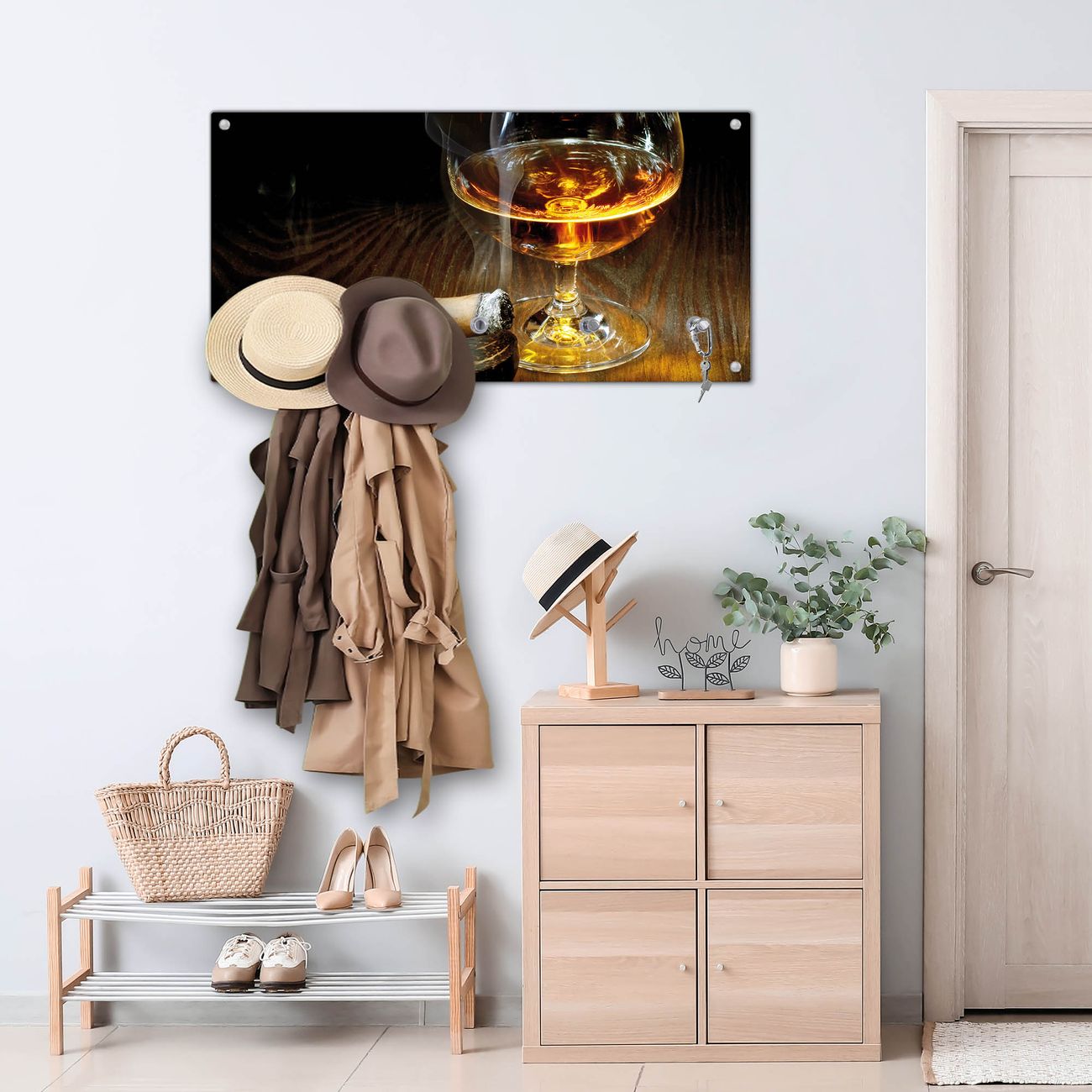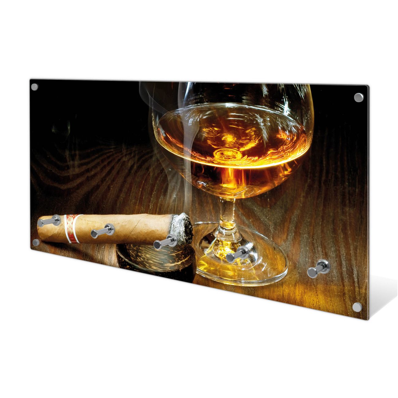 Wandgarderobe Glas 80x40cm Motiv Whiskey & Cigar