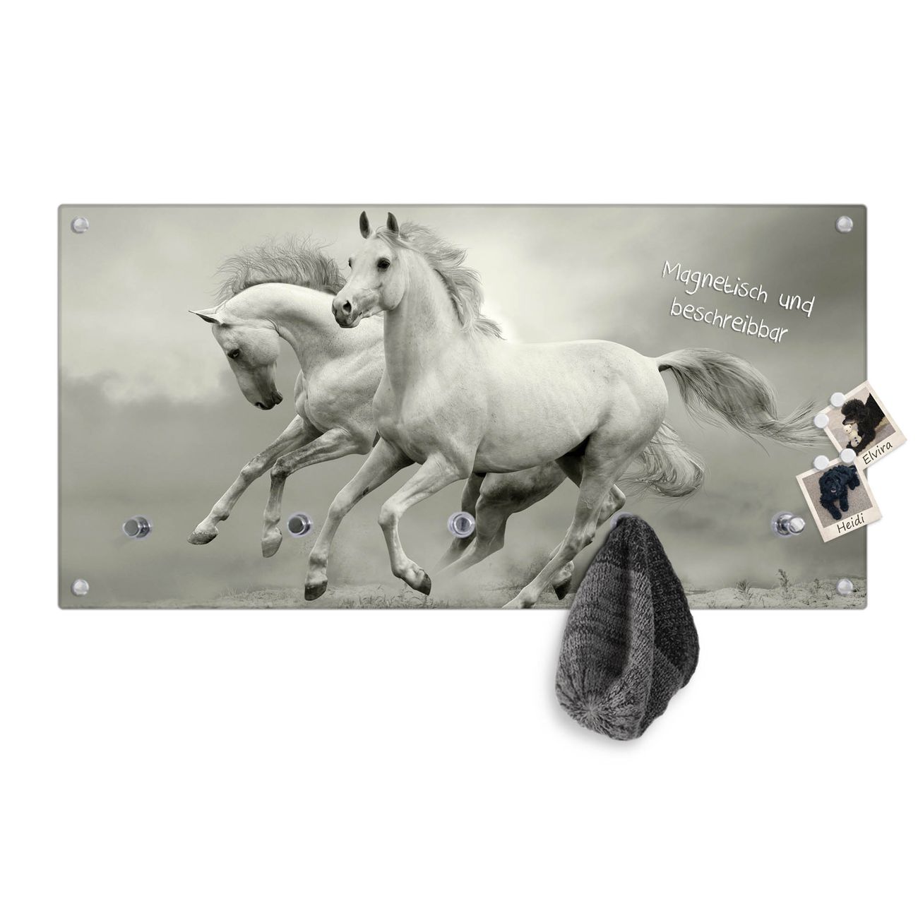 Wandgarderobe Glas 80x40cm Motiv Wilde Pferde SW