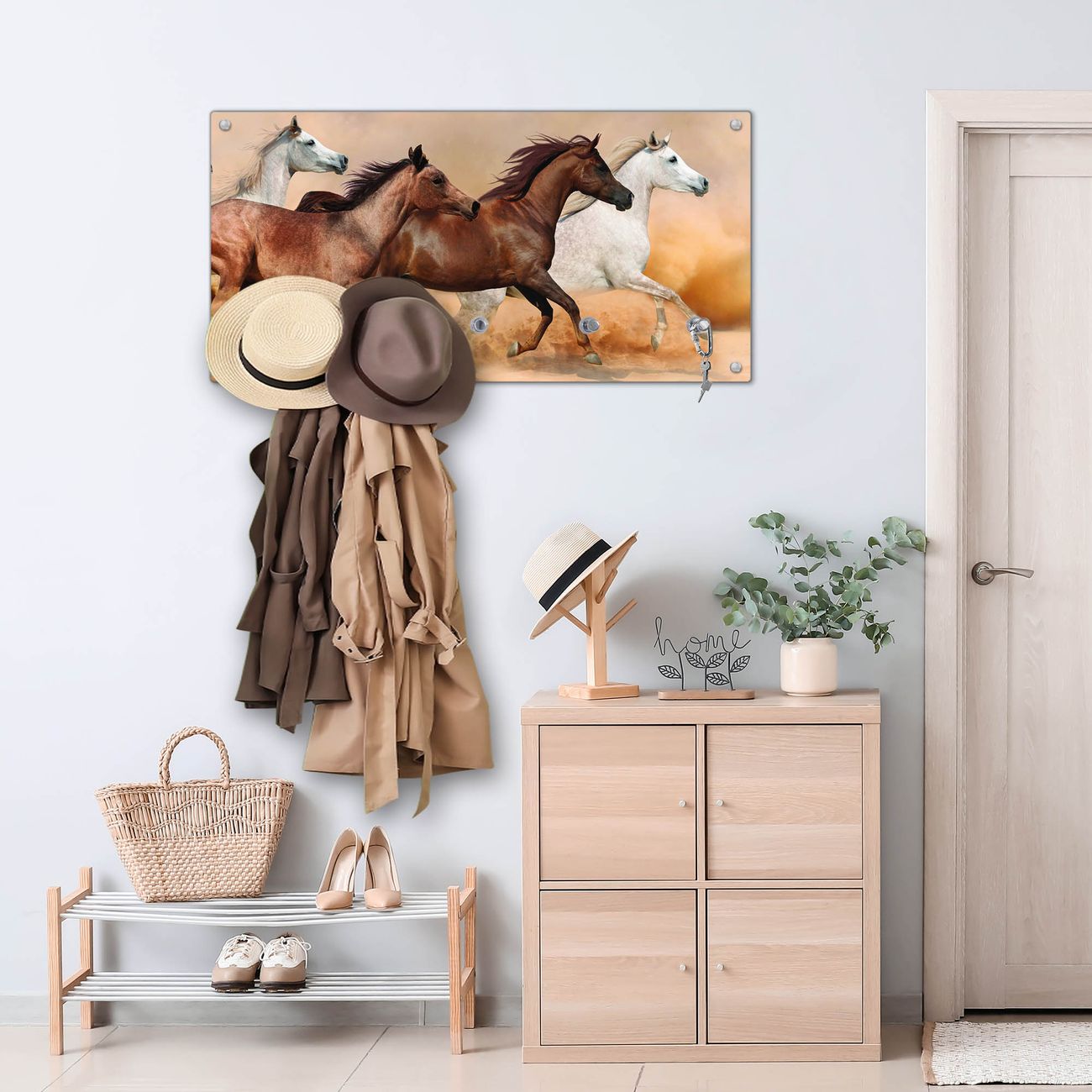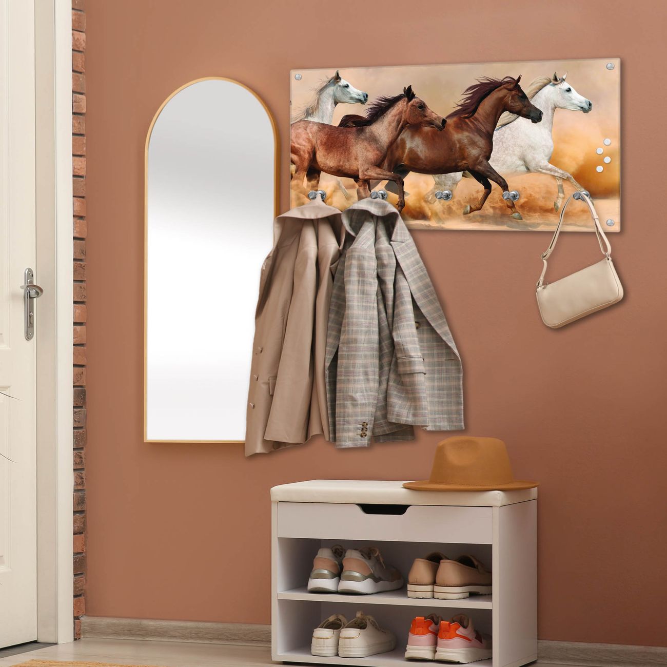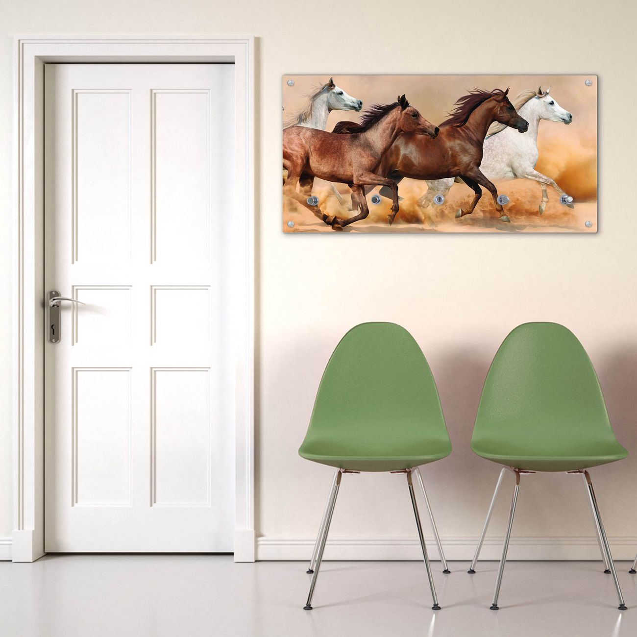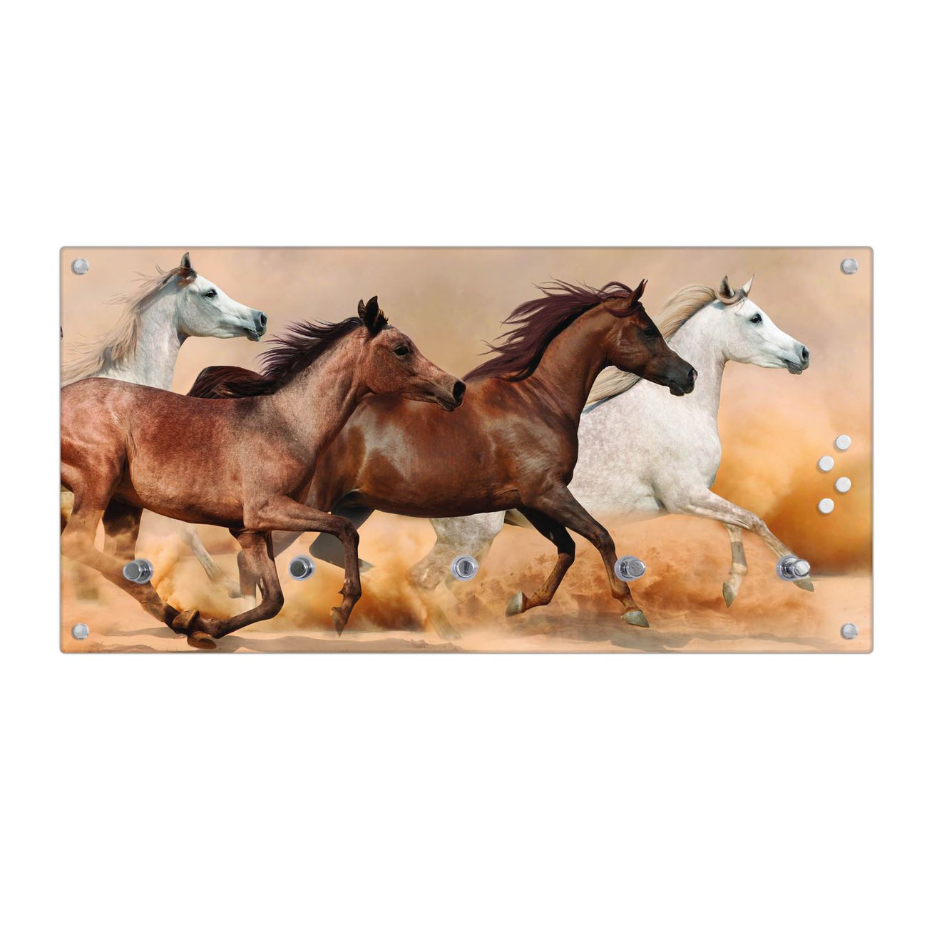 Wandgarderobe Glas 80x40cm Motiv Wilde Pferde