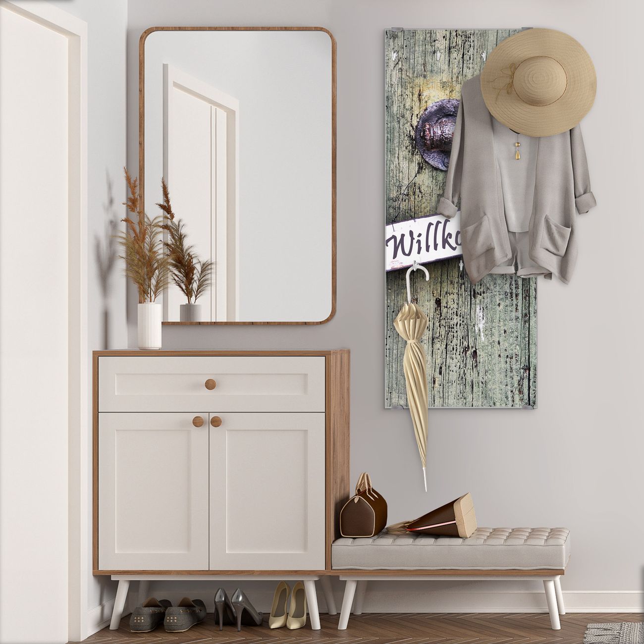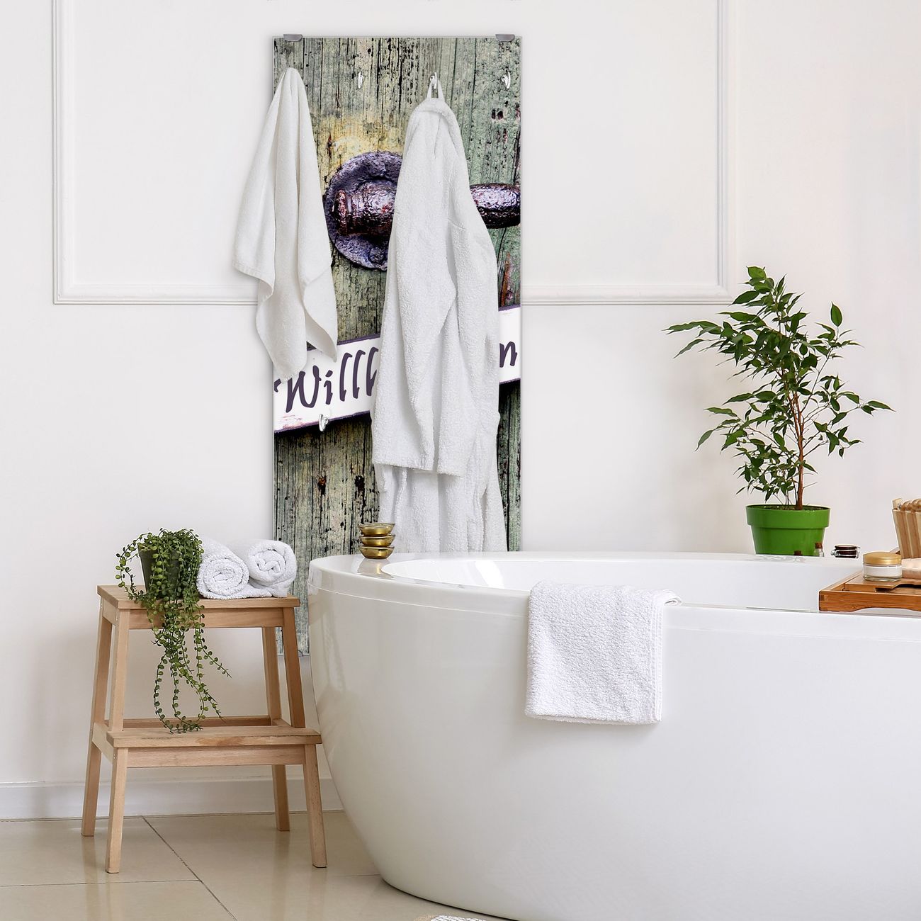Flurgarderobe Glas 50x125cm Motiv Willkommen