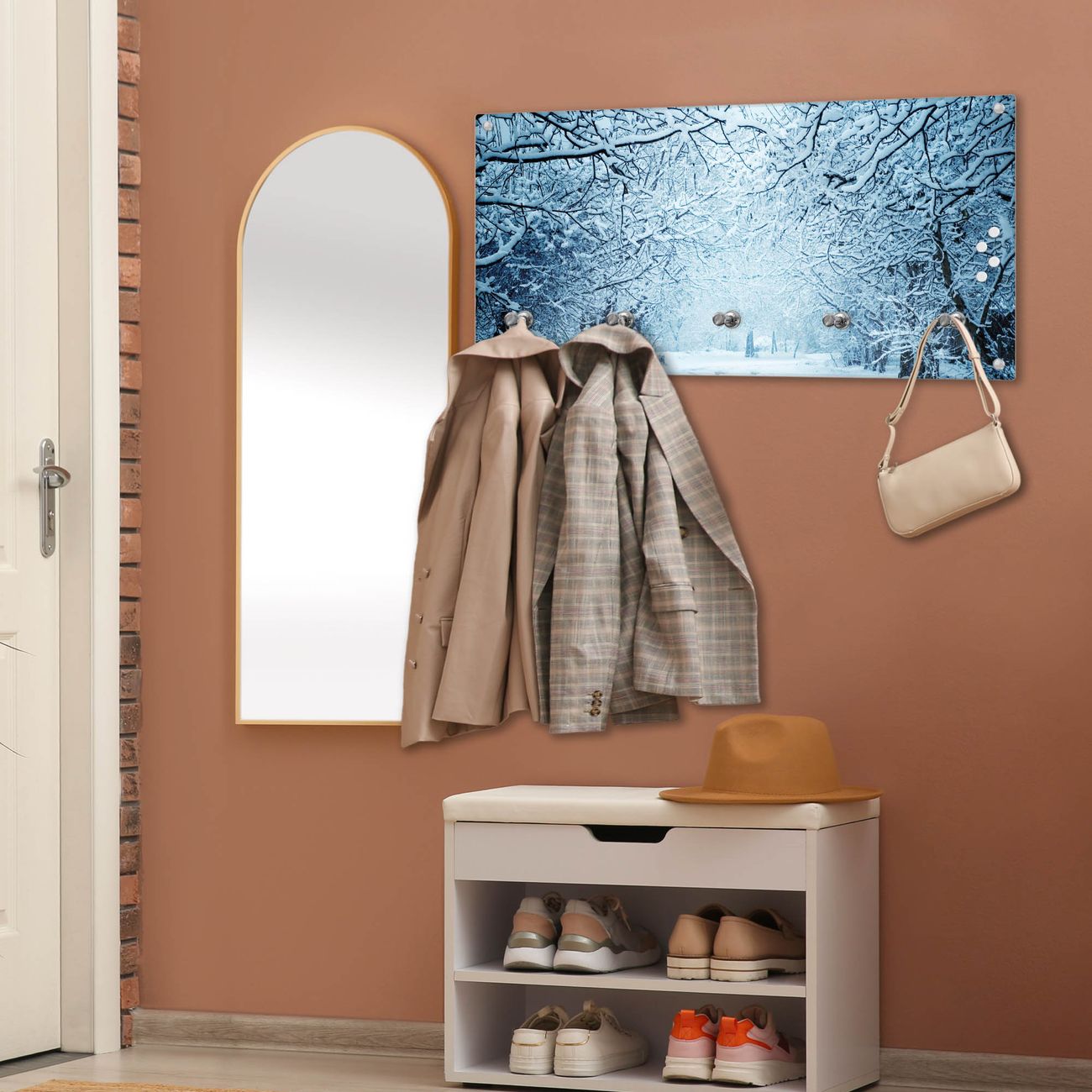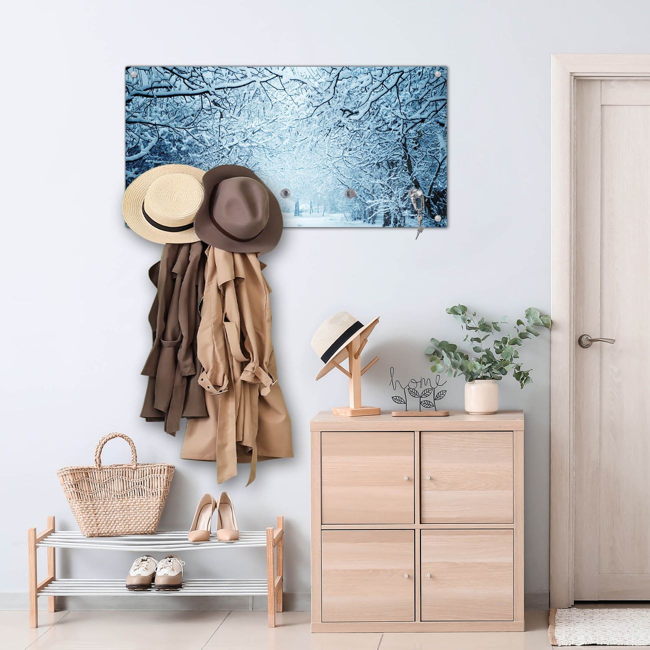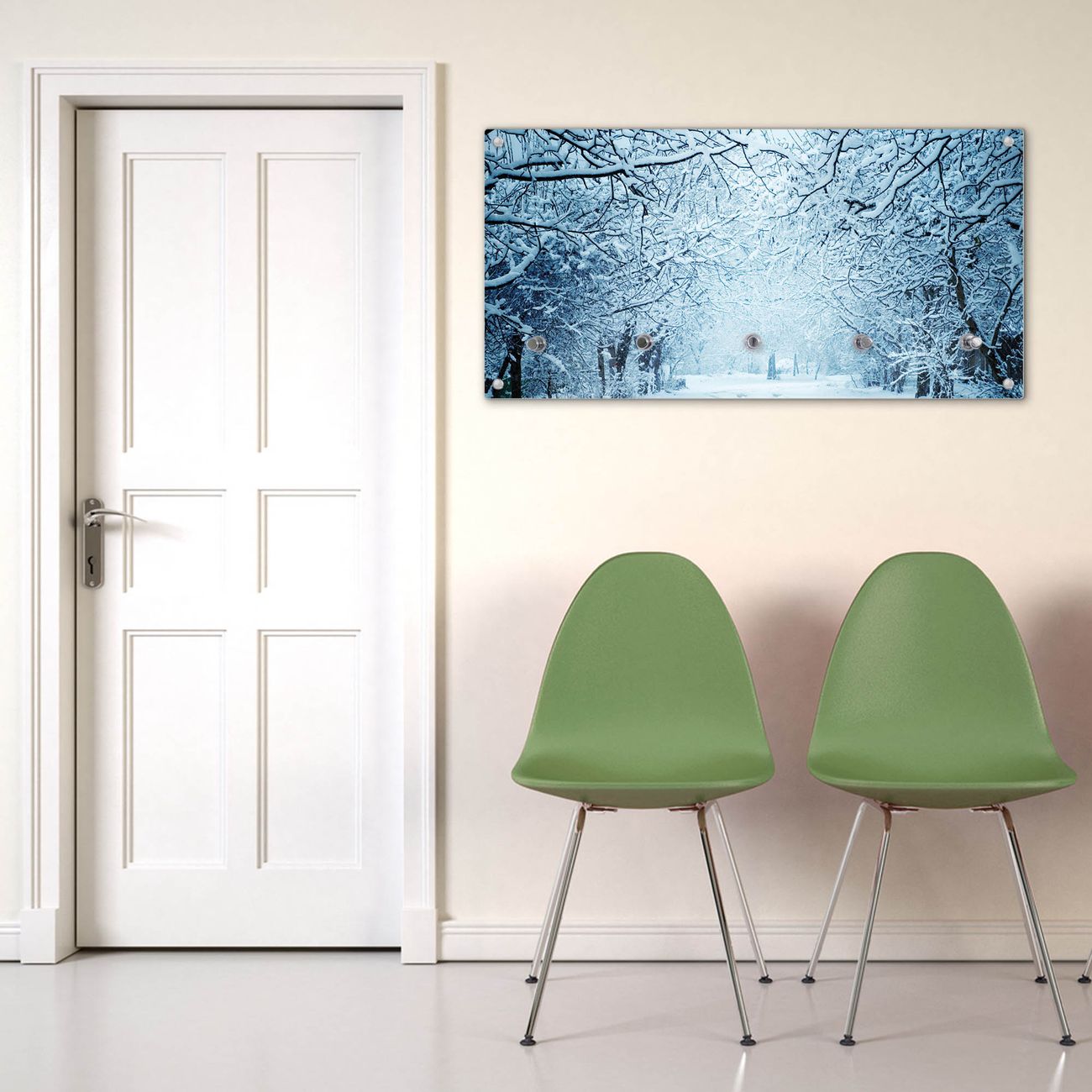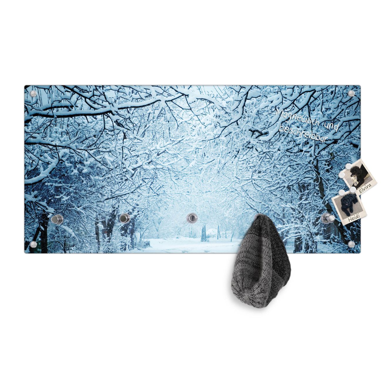 Wandgarderobe Glas 80x40cm Motiv Winterspaziergang