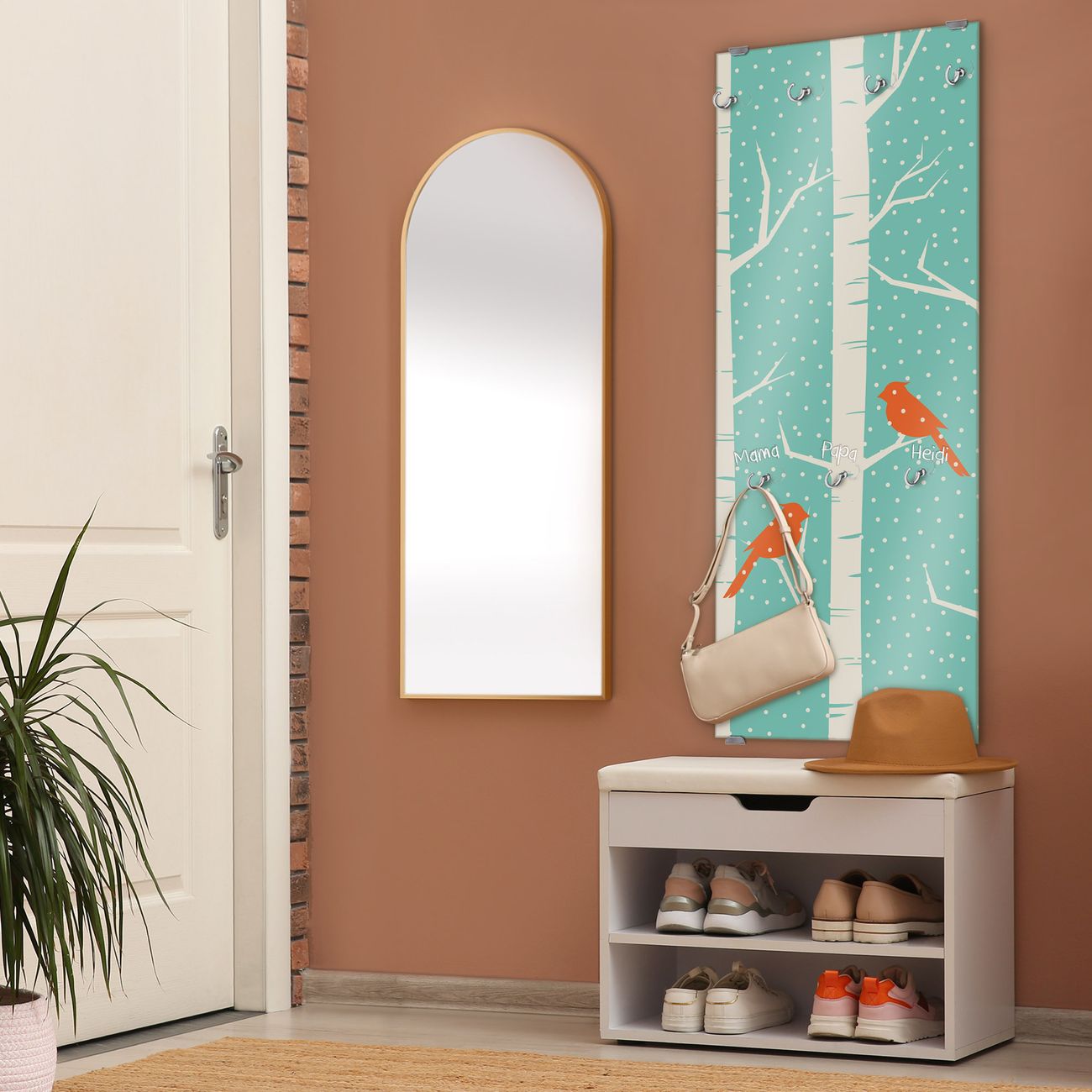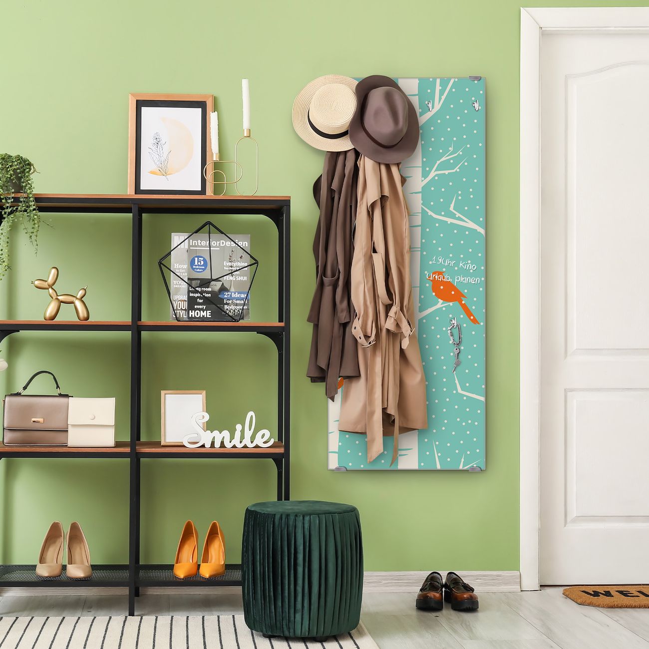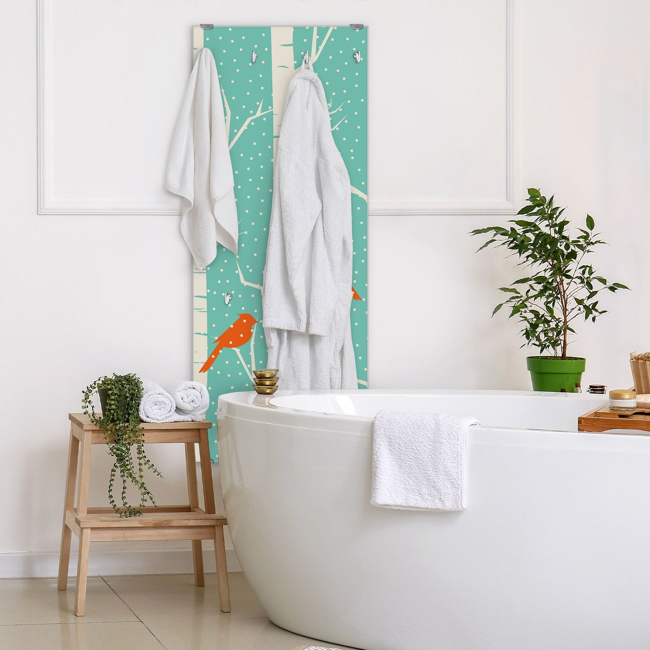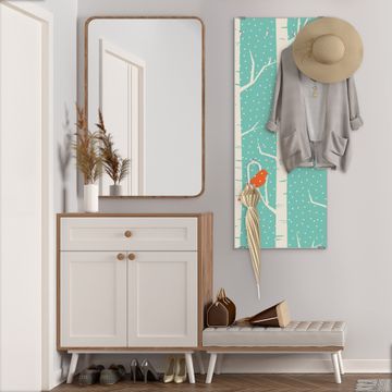FUNKTION: Die banjado Wandgarderobe mit Motiv Wintervögel ist Ihr täglicher Begleiter. Zuverlässig hängen hier Ihre Jacken und Mäntel griffbereit. Das Echtglas ist Ihr Paneel auch beschreibbar und wieder abwischbar. DESIGN: Sie erhalten eine Garderobenleiste aus elegantem Echtglas mit dem Farbbrillanten Motiv Wintervögel hinterklebt. Das Design ist zeitlos klassisch, ohne dabei auf Funktionalität zu verzichten. Suchen Sie aus einer Vielzahl von Motiven das für Ihre Einrichtung Passende aus. DETAILS: Die Flurgarderobe besteht aus 4mm gehärtetem Sicherheitsglas. Sie ist 50cm breit, 125cm hoch und 6cm tief. Die Garderobenhaken zur Selbstmontage präsentieren sich in Edelstahl-Optik, ebenso die Abstandshalter für die Wandmontage. Ihre neue Garderobe ist sofort einsatzbereit. NUTZEN: Ihre neue Garderobe hält nicht nur zuverlässig Ihre Kleidung, sie ist auch optisch ein Blickfang. Durch das Glas können Sie an der Garderobe mit wasserlöslichen Kreidestiften oder Whiteboard-Markern auch Nachrichten hinterlassen. BANJADO: Wir sind ein kleines kreatives Team aus Sachsen und entwickeln Produkte die Design und Funktionalität verbinden sollen. Viel Freude mit Ihrer neuen Garderobe wünscht das banjado-Team!