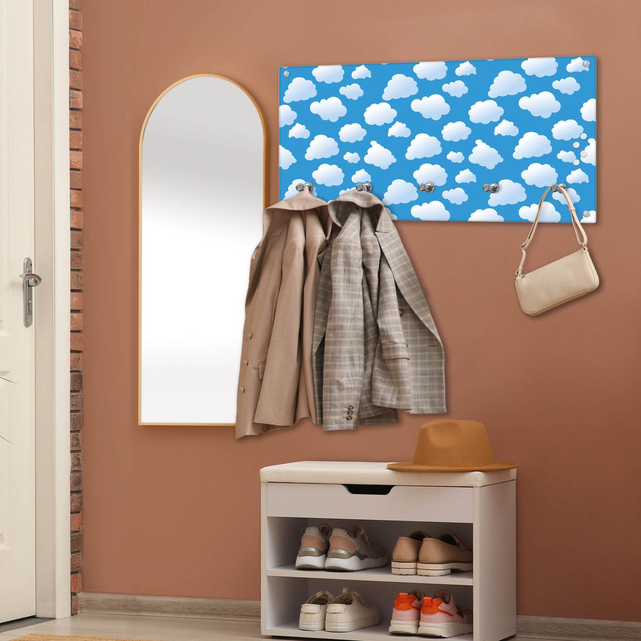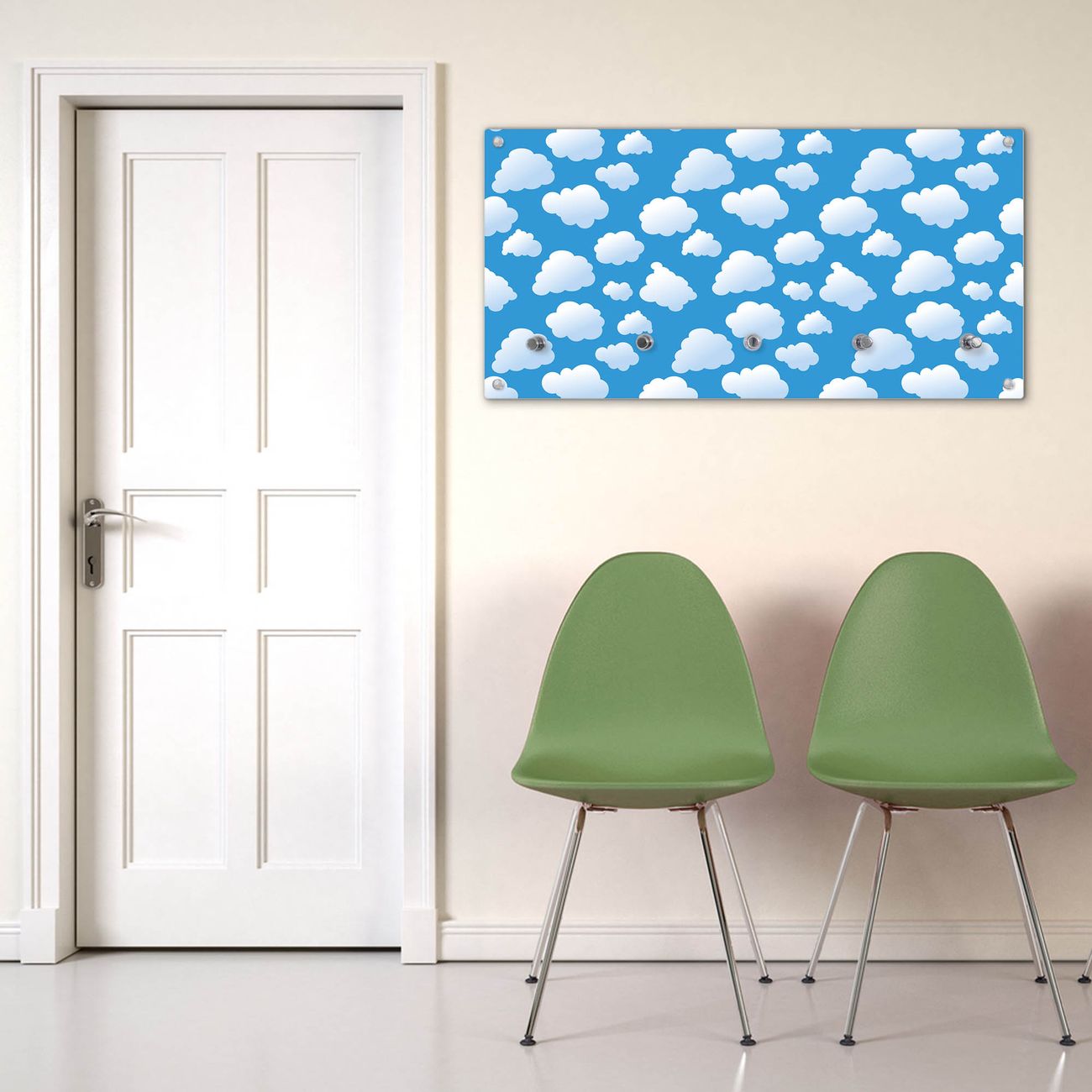 Wandgarderobe Glas 80x40cm Motiv Wölkchen