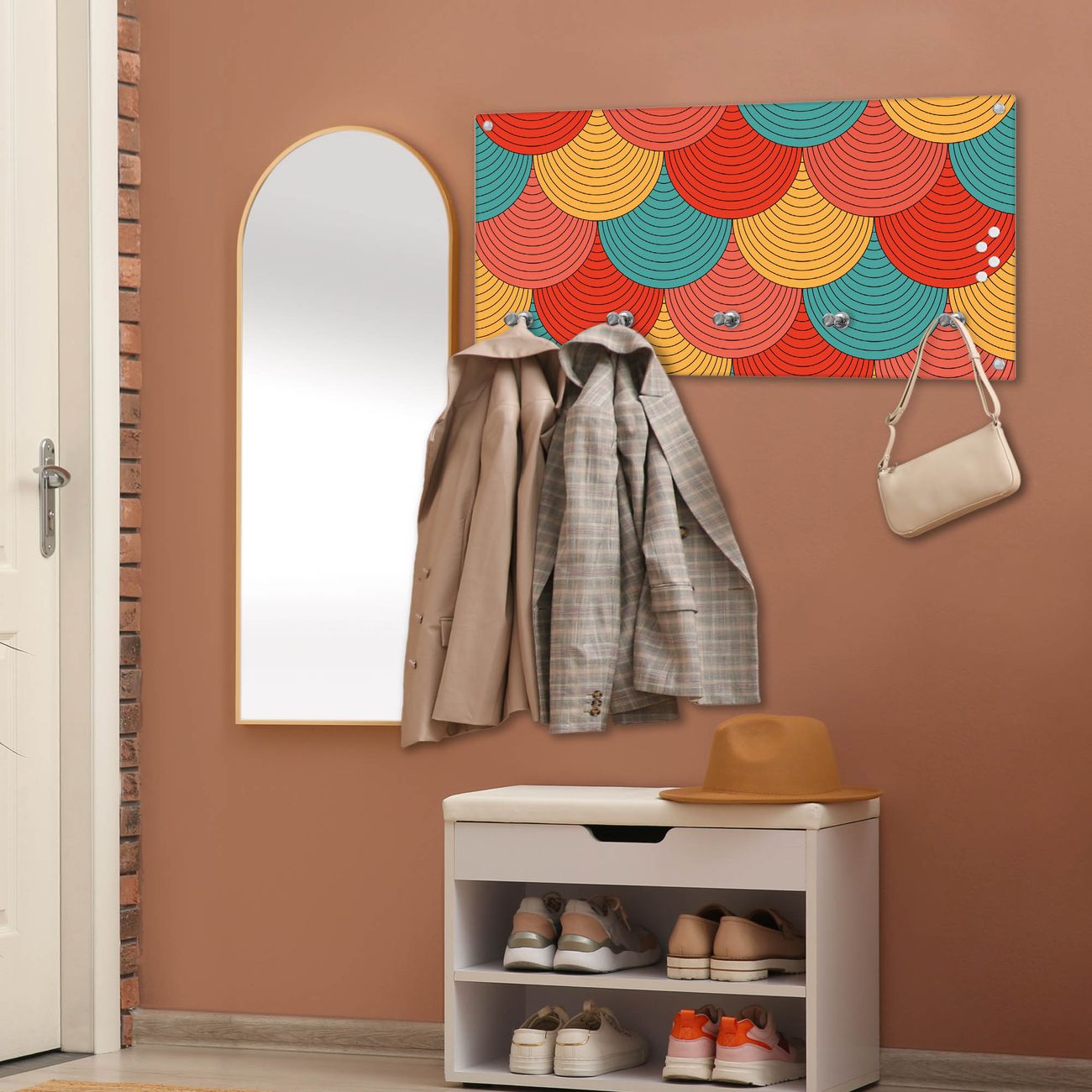 Bitte beachten Sie, dass an dieser Garderobe nur starke Neodym-Magnete halten! FUNKTION: Die banjado Wandgarderobe mit Motiv Wolkenstore ist Ihr täglicher Begleiter. Zuverlässig hängen hier Ihre Jacken und Mäntel griffbereit. Gleichzeitig ist die Design Garderobe magnetisch, Sie können Notizen anheften und durch das Echtglas ist Ihr Paneel auch beschreibbar und wieder abwischbar. DESIGN: Sie erhalten eine Garderobenleiste aus elegantem Echtglas mit dem Farbbrillanten Motiv Wolkenstore hinterklebt. Das Design ist zeitlos klassisch, ohne dabei auf Funktionalität zu verzichten. Suchen Sie aus einer Vielzahl von Motiven das für Ihre Einrichtung Passende aus. DETAILS: Die Flurgarderobe besteht aus 4mm gehärtetem Sicherheitsglas. Sie ist 80cm breit, 40cm hoch und 6cm tief. Die Garderobenhaken zur Selbstmontage präsentieren sich in Edelstahl-Optik, ebenso die Abstandshalter für die Wandmontage. Ihre neue Garderobe ist sofort einsatzbereit. NUTZEN: Ihre neue Garderobe hält nicht nur zuverlässig Ihre Kleidung, sie ist auch optisch ein Blickfang. Durch die magnetische Wirkung können Sie mit 4 beigefügten extrastarken Neodym-Magneten Notizen anheften und mit wasserlöslichen Kreidestiften oder Whiteboard-Markern auch Nachrichten hinterlassen. BANJADO: Wir sind ein kleines kreatives Team aus Sachsen und entwickeln Produkte die Design und Funktionalität verbinden sollen. Viel Freude mit Ihrer neuen Garderobe wünscht das banjado-Team!