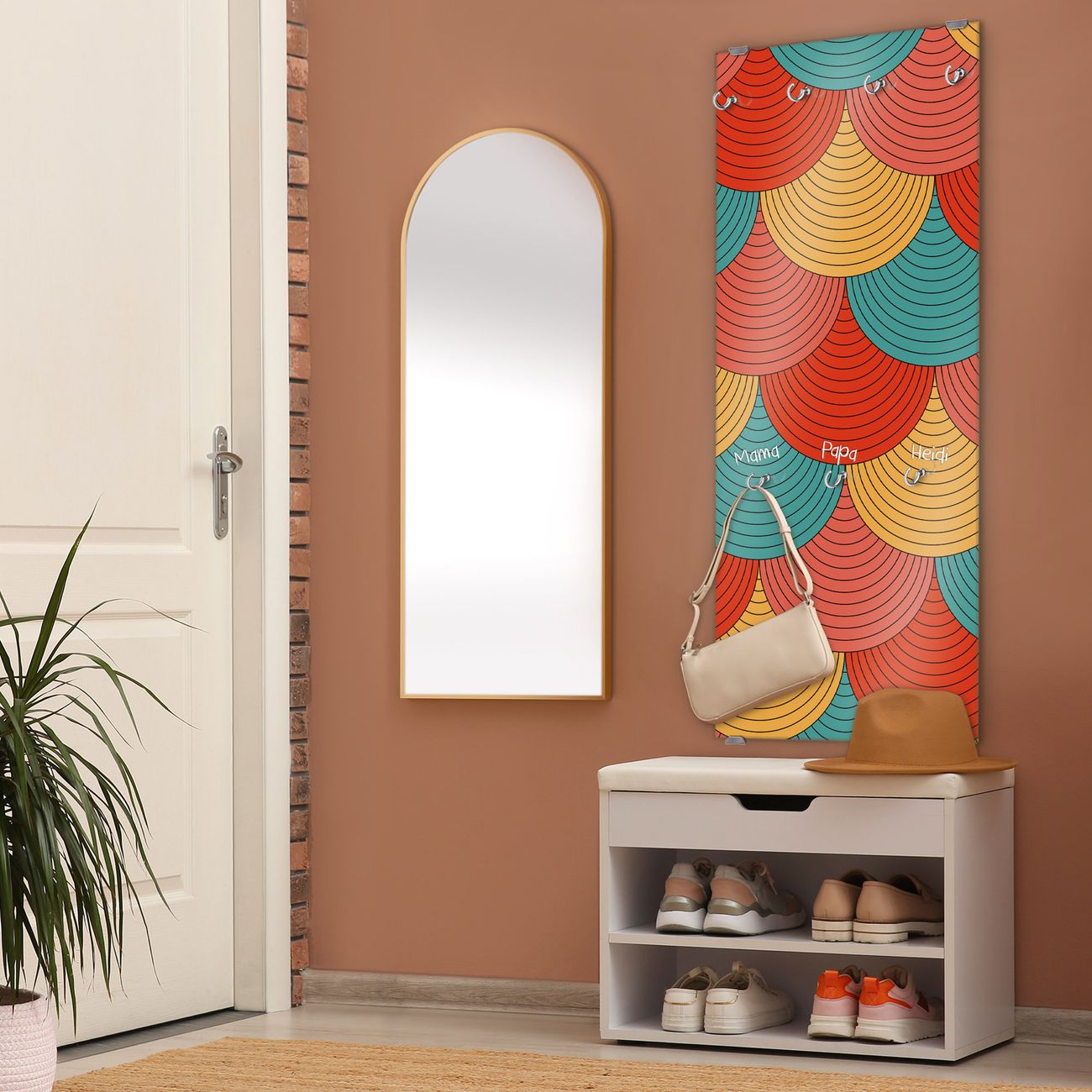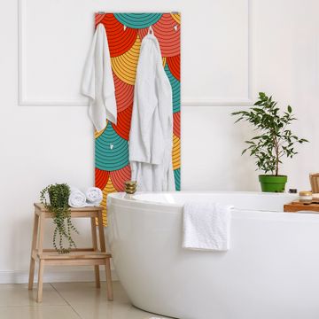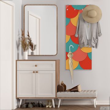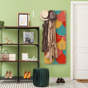 FUNKTION: Die banjado Wandgarderobe mit Motiv Wolkenstore ist Ihr täglicher Begleiter. Zuverlässig hängen hier Ihre Jacken und Mäntel griffbereit. Das Echtglas ist Ihr Paneel auch beschreibbar und wieder abwischbar. DESIGN: Sie erhalten eine Garderobenleiste aus elegantem Echtglas mit dem Farbbrillanten Motiv Wolkenstore hinterklebt. Das Design ist zeitlos klassisch, ohne dabei auf Funktionalität zu verzichten. Suchen Sie aus einer Vielzahl von Motiven das für Ihre Einrichtung Passende aus. DETAILS: Die Flurgarderobe besteht aus 4mm gehärtetem Sicherheitsglas. Sie ist 50cm breit, 125cm hoch und 6cm tief. Die Garderobenhaken zur Selbstmontage präsentieren sich in Edelstahl-Optik, ebenso die Abstandshalter für die Wandmontage. Ihre neue Garderobe ist sofort einsatzbereit. NUTZEN: Ihre neue Garderobe hält nicht nur zuverlässig Ihre Kleidung, sie ist auch optisch ein Blickfang. Durch das Glas können Sie an der Garderobe mit wasserlöslichen Kreidestiften oder Whiteboard-Markern auch Nachrichten hinterlassen. BANJADO: Wir sind ein kleines kreatives Team aus Sachsen und entwickeln Produkte die Design und Funktionalität verbinden sollen. Viel Freude mit Ihrer neuen Garderobe wünscht das banjado-Team!