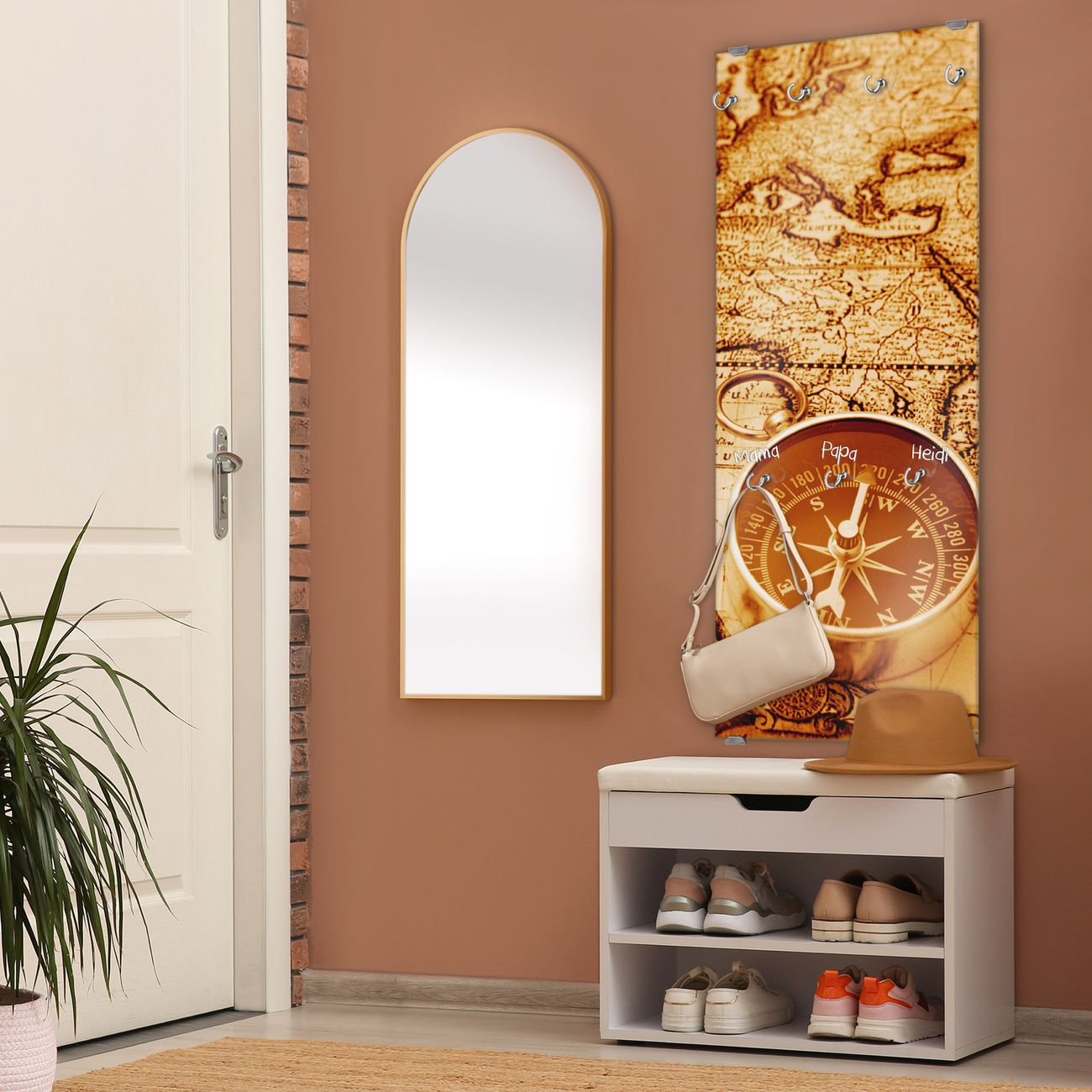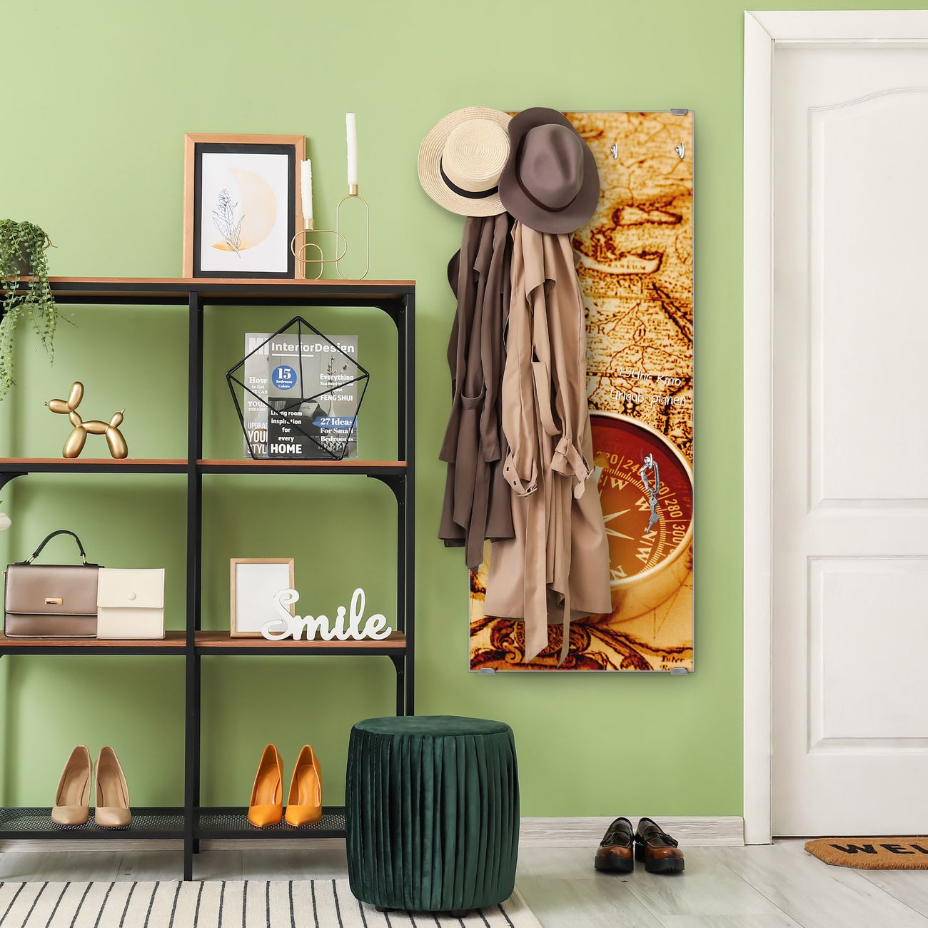 FUNKTION: Die banjado Wandgarderobe mit Motiv World Map ist Ihr täglicher Begleiter. Zuverlässig hängen hier Ihre Jacken und Mäntel griffbereit. Das Echtglas ist Ihr Paneel auch beschreibbar und wieder abwischbar. DESIGN: Sie erhalten eine Garderobenleiste aus elegantem Echtglas mit dem Farbbrillanten Motiv World Map hinterklebt. Das Design ist zeitlos klassisch, ohne dabei auf Funktionalität zu verzichten. Suchen Sie aus einer Vielzahl von Motiven das für Ihre Einrichtung Passende aus. DETAILS: Die Flurgarderobe besteht aus 4mm gehärtetem Sicherheitsglas. Sie ist 50cm breit, 125cm hoch und 6cm tief. Die Garderobenhaken zur Selbstmontage präsentieren sich in Edelstahl-Optik, ebenso die Abstandshalter für die Wandmontage. Ihre neue Garderobe ist sofort einsatzbereit. NUTZEN: Ihre neue Garderobe hält nicht nur zuverlässig Ihre Kleidung, sie ist auch optisch ein Blickfang. Durch das Glas können Sie an der Garderobe mit wasserlöslichen Kreidestiften oder Whiteboard-Markern auch Nachrichten hinterlassen. BANJADO: Wir sind ein kleines kreatives Team aus Sachsen und entwickeln Produkte die Design und Funktionalität verbinden sollen. Viel Freude mit Ihrer neuen Garderobe wünscht das banjado-Team!