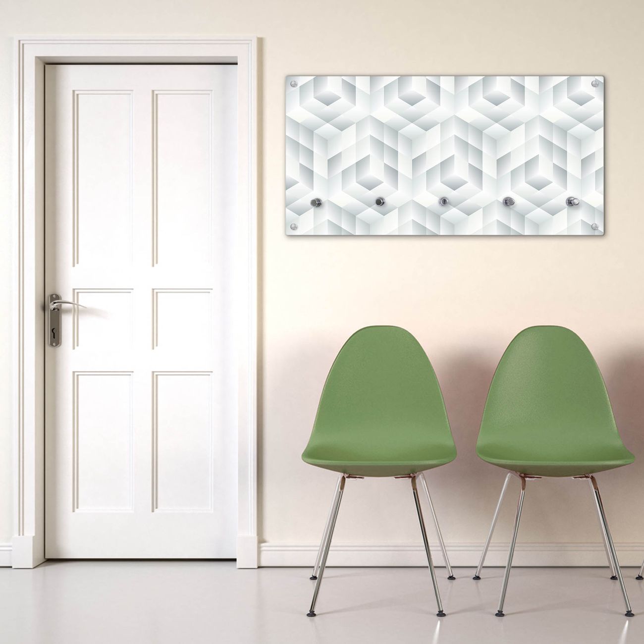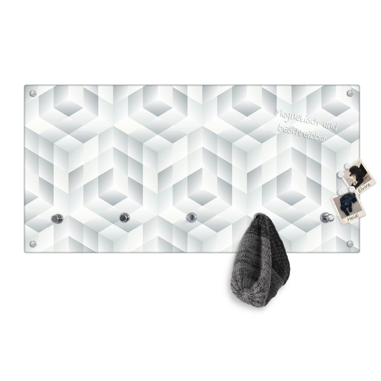 Wandgarderobe Glas 80x40cm Motiv Würfel Grau