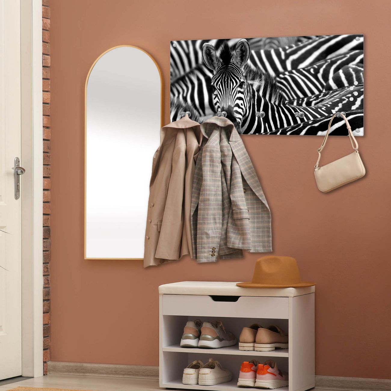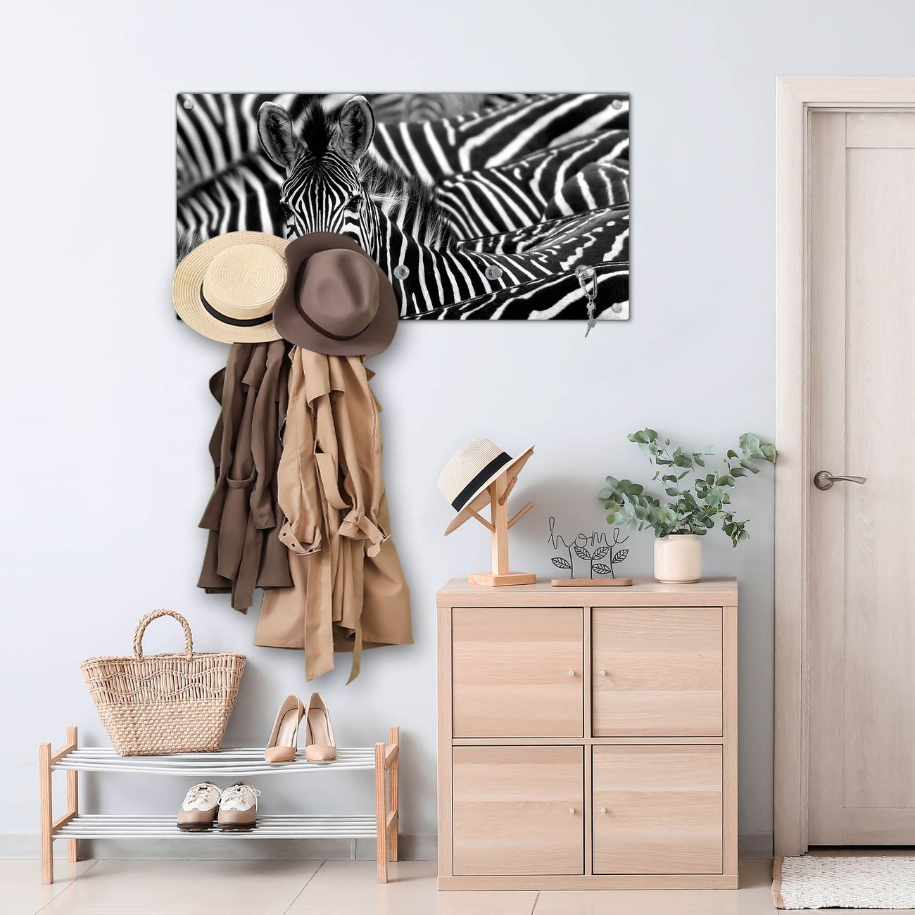 Wandgarderobe Glas 80x40cm Motiv Zebras