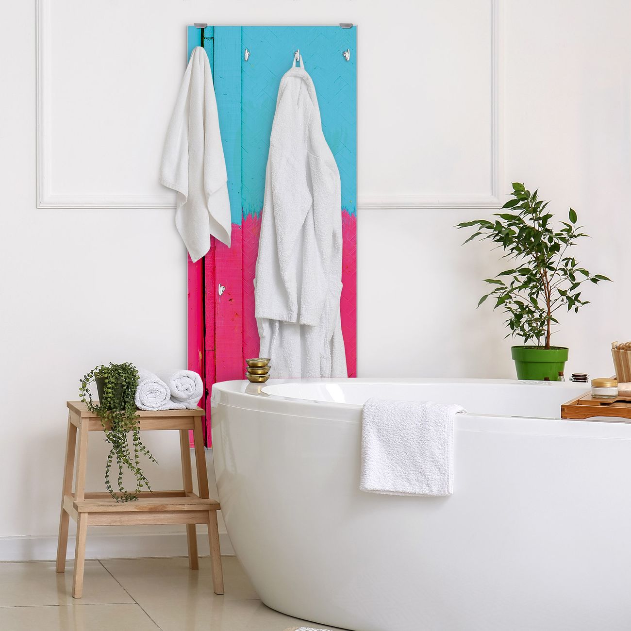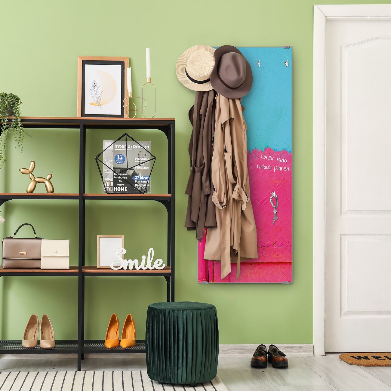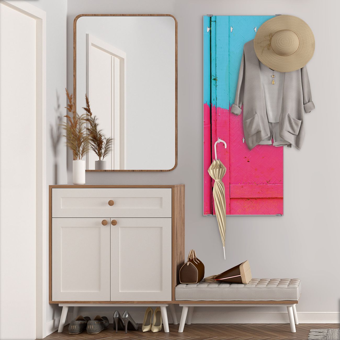 FUNKTION: Die banjado Wandgarderobe mit Motiv Zwei Farben ist Ihr täglicher Begleiter. Zuverlässig hängen hier Ihre Jacken und Mäntel griffbereit. Das Echtglas ist Ihr Paneel auch beschreibbar und wieder abwischbar. DESIGN: Sie erhalten eine Garderobenleiste aus elegantem Echtglas mit dem Farbbrillanten Motiv Zwei Farben hinterklebt. Das Design ist zeitlos klassisch, ohne dabei auf Funktionalität zu verzichten. Suchen Sie aus einer Vielzahl von Motiven das für Ihre Einrichtung Passende aus. DETAILS: Die Flurgarderobe besteht aus 4mm gehärtetem Sicherheitsglas. Sie ist 50cm breit, 125cm hoch und 6cm tief. Die Garderobenhaken zur Selbstmontage präsentieren sich in Edelstahl-Optik, ebenso die Abstandshalter für die Wandmontage. Ihre neue Garderobe ist sofort einsatzbereit. NUTZEN: Ihre neue Garderobe hält nicht nur zuverlässig Ihre Kleidung, sie ist auch optisch ein Blickfang. Durch das Glas können Sie an der Garderobe mit wasserlöslichen Kreidestiften oder Whiteboard-Markern auch Nachrichten hinterlassen. BANJADO: Wir sind ein kleines kreatives Team aus Sachsen und entwickeln Produkte die Design und Funktionalität verbinden sollen. Viel Freude mit Ihrer neuen Garderobe wünscht das banjado-Team!