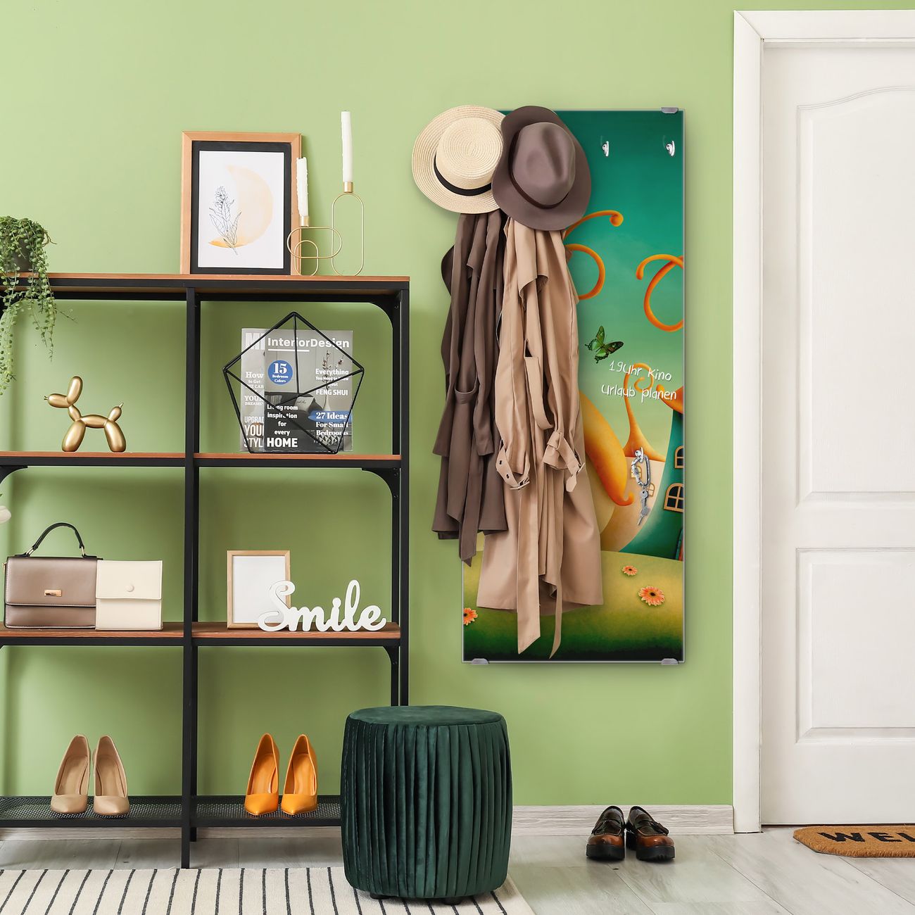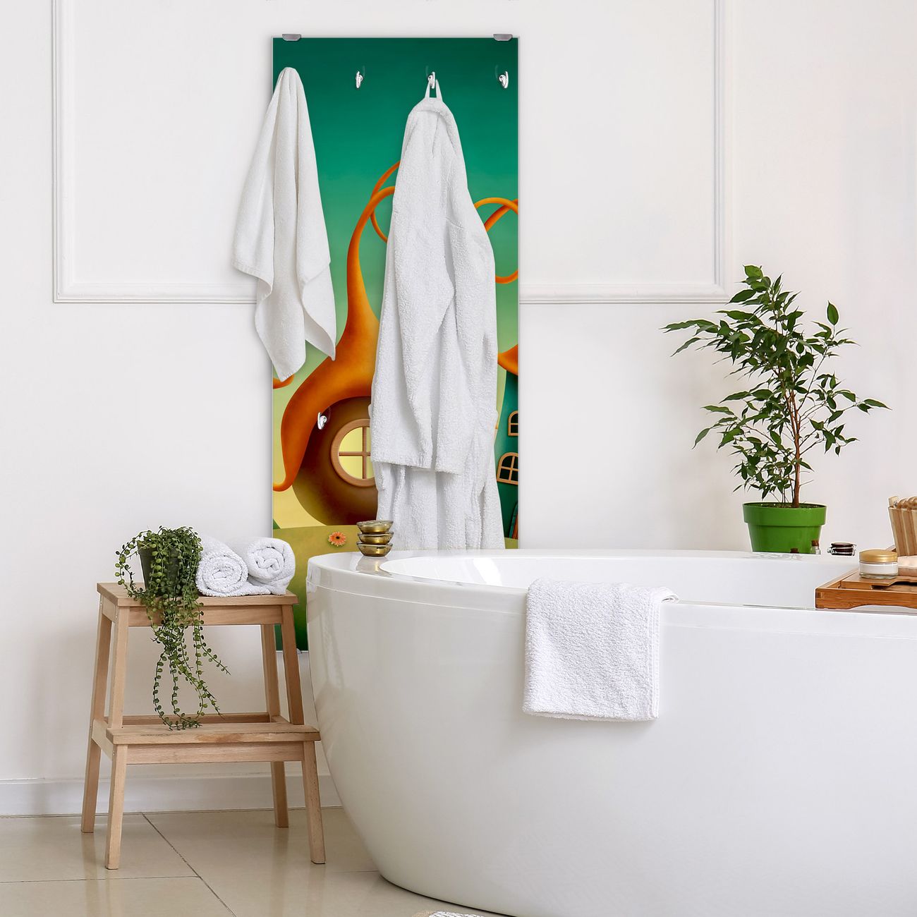 FUNKTION: Die banjado Wandgarderobe mit Motiv Zwergenhausen ist Ihr täglicher Begleiter. Zuverlässig hängen hier Ihre Jacken und Mäntel griffbereit. Das Echtglas ist Ihr Paneel auch beschreibbar und wieder abwischbar. DESIGN: Sie erhalten eine Garderobenleiste aus elegantem Echtglas mit dem Farbbrillanten Motiv Zwergenhausen hinterklebt. Das Design ist zeitlos klassisch, ohne dabei auf Funktionalität zu verzichten. Suchen Sie aus einer Vielzahl von Motiven das für Ihre Einrichtung Passende aus. DETAILS: Die Flurgarderobe besteht aus 4mm gehärtetem Sicherheitsglas. Sie ist 50cm breit, 125cm hoch und 6cm tief. Die Garderobenhaken zur Selbstmontage präsentieren sich in Edelstahl-Optik, ebenso die Abstandshalter für die Wandmontage. Ihre neue Garderobe ist sofort einsatzbereit. NUTZEN: Ihre neue Garderobe hält nicht nur zuverlässig Ihre Kleidung, sie ist auch optisch ein Blickfang. Durch das Glas können Sie an der Garderobe mit wasserlöslichen Kreidestiften oder Whiteboard-Markern auch Nachrichten hinterlassen. BANJADO: Wir sind ein kleines kreatives Team aus Sachsen und entwickeln Produkte die Design und Funktionalität verbinden sollen. Viel Freude mit Ihrer neuen Garderobe wünscht das banjado-Team!