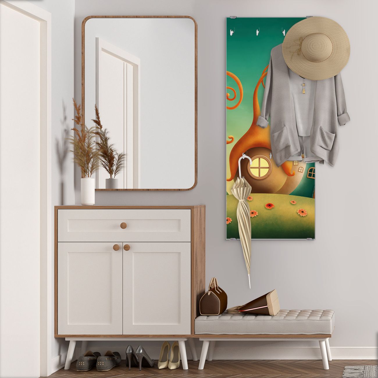 Flurgarderobe Glas 50x125cm Motiv Zwergenhausen