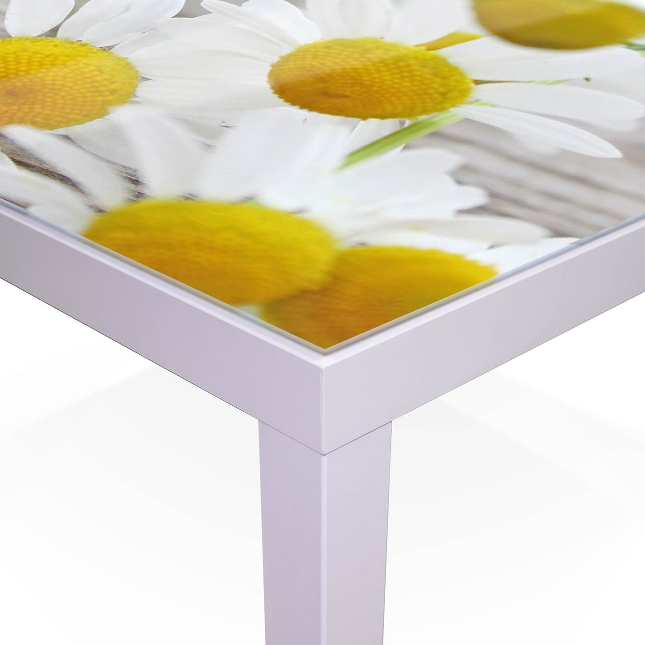 FUNKTION: Die banjado Glas Abdeckplatte Kamillenblüten schützt Ihren IKEA LACK Tisch in 55x55cm perfekt vor Kratzern oder Schäden. Die Glasplatte aus Sicherheitsglas verdeckt auch optimal bereits vorhandenen Schäden an der Tischplatte. Sie erhalten eine passende Abdeckung für den IKEA LACK Beistelltisch 55x55cm DESIGN: Leuchtende Motive und hochwertiges Material machen aus Ihrem Beistelltisch ein Designobjekt. Sie erhalten ein dekoratives Glasbild mit Motiv Altes Holz, welches auch beschreibbar und wieder abwischbar ist. Abgerundete Kanten und Sicherheitsglas garantieren einen langen und sicheren Einsatz. DETAILS: Die Glas Abdeckung besteht aus 4mm dickem Sicherheitsglas und ist sofort einsatzbereit. Sie passt perfekt auf den IKEA LACK Beistelltisch in 55x55cm. Das Glas ist gehärtet und absolut kratz- und schlagfest. Sie erhalten 5 selbstklebende Gumminoppen damit Ihre Tischplatte festen Halt hat. NUTZEN: Die banjado Glasplatte vereint Design und Funktion. Brillante Farben und ein einzigartiges Motiv sorgen für das schöne Design. Das stabile Material lässt Ihnen Freiraum, um darauf zu schreiben, Schäden abzudecken oder Kratzer zu vermeiden. BANJADO: Wir sind ein kleines Team aus dem Herzen von Sachsen. Wir legen großen Wert auf die Verbindung von Funktionalität und Design, Sie erhalten keine preiswerte Importware, sondern Handarbeit. Wir entwerfen unsere Produkte selber mit großer Sorgfalt und Liebe zum Detail. Auf Wunsch sind auch andere Größen und Motive umsetzbar. Herzlichst, Ihr banjado-Team