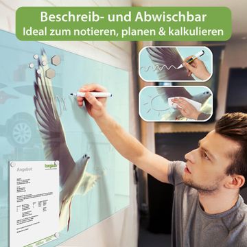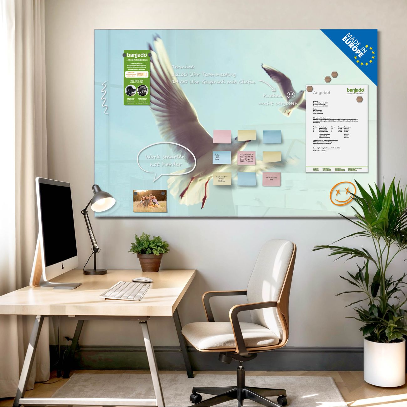 Die banjado Glas Magnettafel mit dem Motiv Motiv 2 Möwen verbindet Funktionalität mit Stil. Sie ersetzt das Zettelchaos durch klare Strukturen und bringt dabei eine warme, natürliche Atmosphäre in Ihr Zuhause. Ob im Büro, in der Küche oder im Eingangsbereich - dieses Design-Board zieht Blicke an und sorgt für Ordnung mit Charakter.
