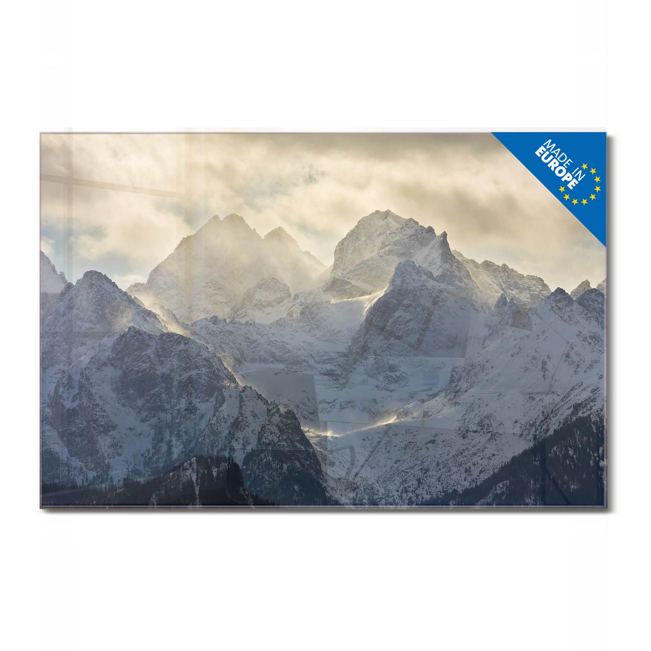 Glas Magnettafel im Querformat Motiv Alpen im Sonnenschein