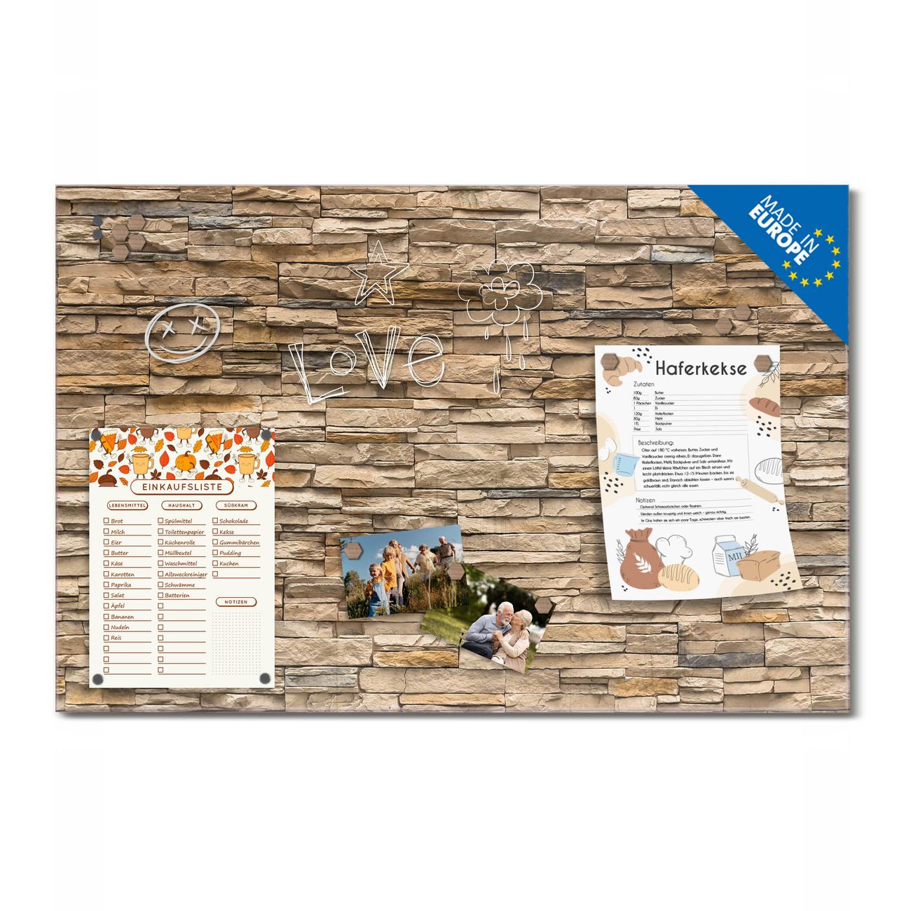 Ein Stück Design, das Ihren Alltag organisiert. Schreiben, heften, inspirieren - alles an einem Ort. Qualität, die man spürt. Montage leicht gemacht. Handwerk mit Herz - veredelt in Sachsen. Einzigartiges Design mit Motiv Motiv Alte Mauer Beschreibbare Glasoberfläche, leicht zu reinigen Starke Magnetkraft durch Stahlrückwand Inklusive 4 Neodym-Magneten Flexible Montageoptionen Handveredelt in Sachsen - Qualität, die bleibt