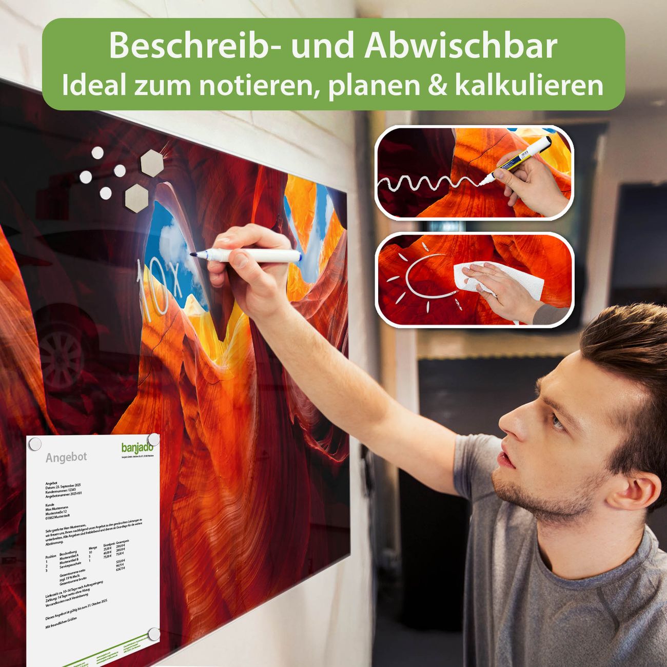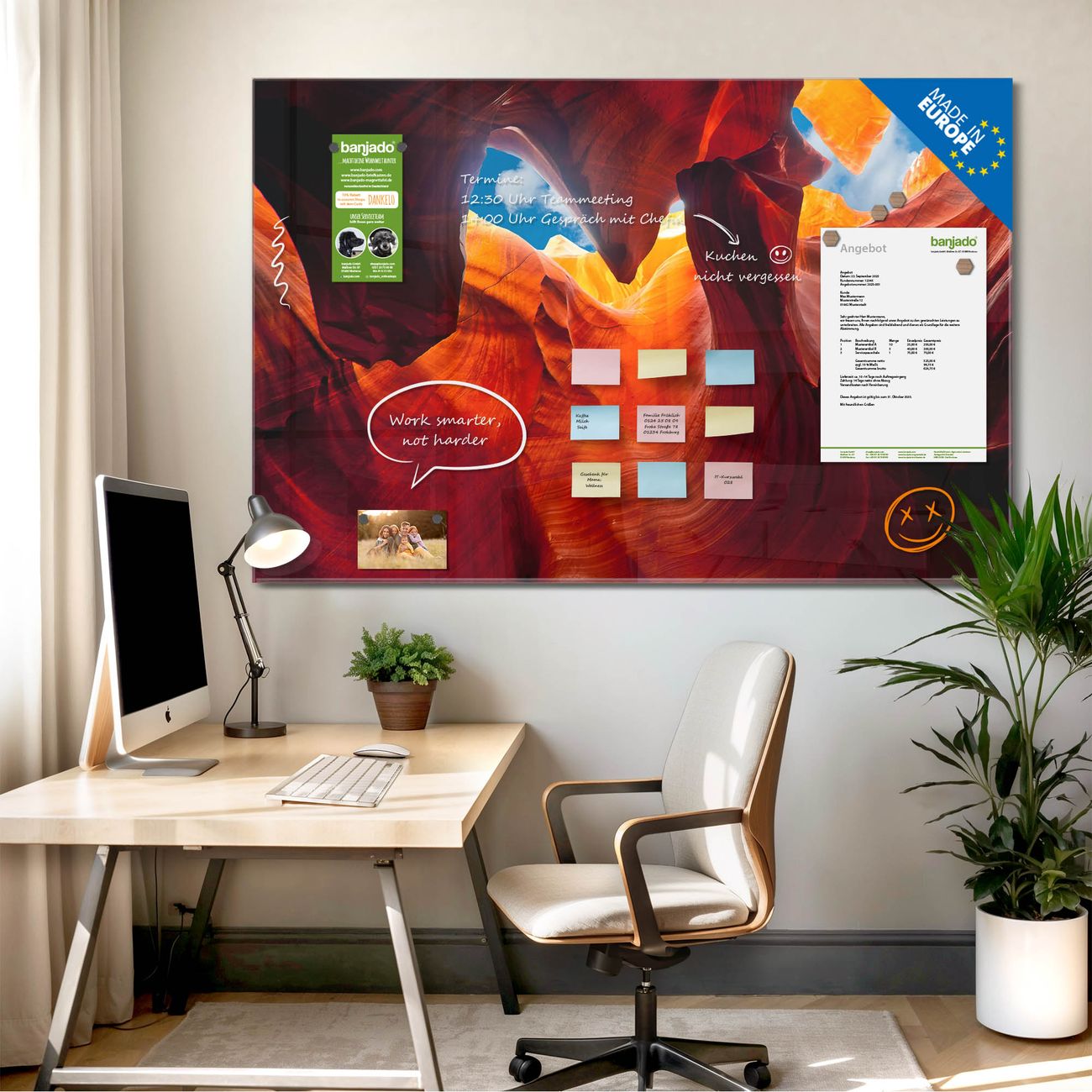 Die banjado Glas Magnettafel mit dem Motiv Motiv Antelope Canyon 2 verbindet Funktionalität mit Stil. Sie ersetzt das Zettelchaos durch klare Strukturen und bringt dabei eine warme, natürliche Atmosphäre in Ihr Zuhause. Ob im Büro, in der Küche oder im Eingangsbereich - dieses Design-Board zieht Blicke an und sorgt für Ordnung mit Charakter.