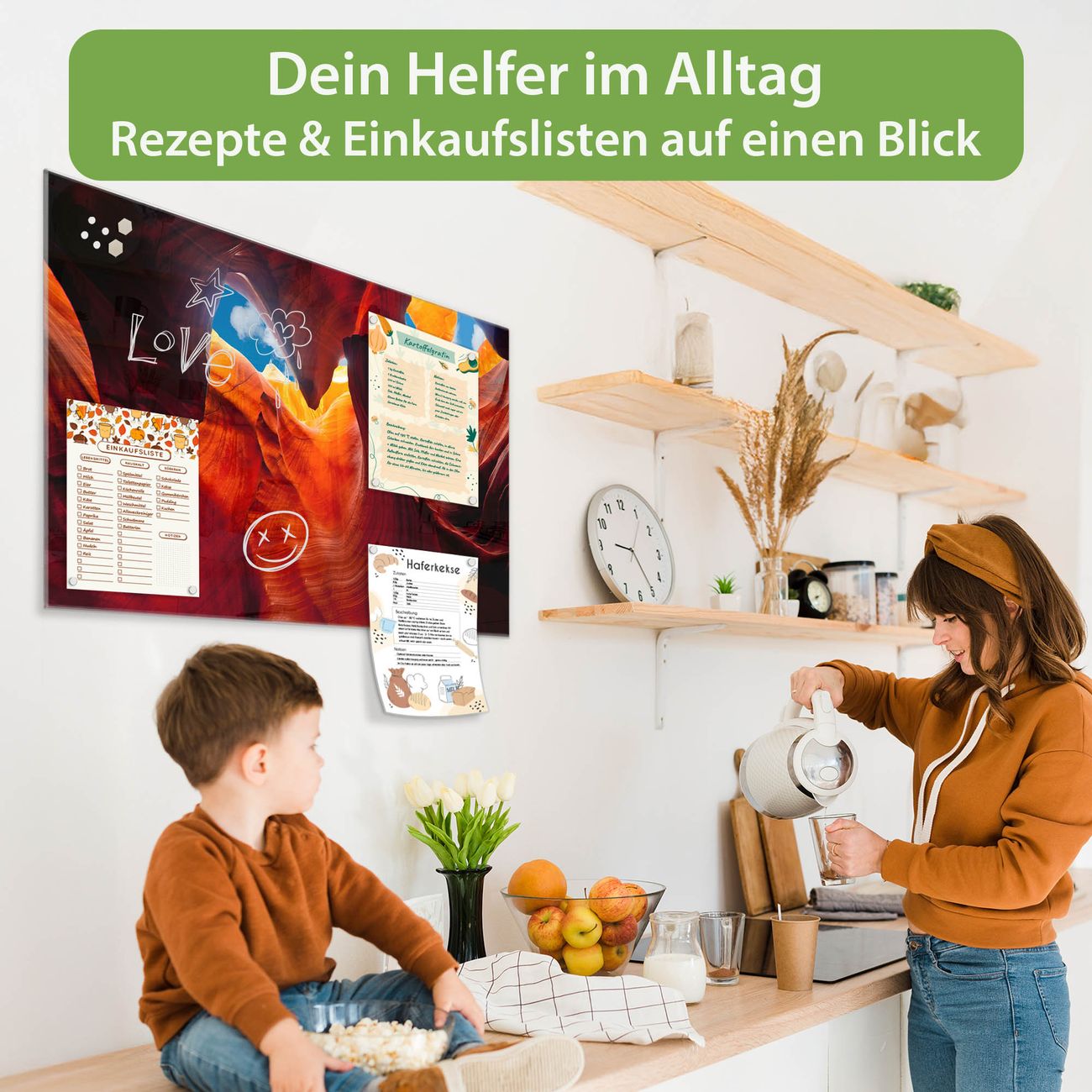 Ein Stück Design, das Ihren Alltag organisiert. Schreiben, heften, inspirieren - alles an einem Ort. Qualität, die man spürt. Montage leicht gemacht. Handwerk mit Herz - veredelt in Sachsen. Einzigartiges Design mit Motiv Motiv Antelope Canyon 2 Beschreibbare Glasoberfläche, leicht zu reinigen Starke Magnetkraft durch Stahlrückwand Inklusive 4 Neodym-Magneten Flexible Montageoptionen Handveredelt in Sachsen - Qualität, die bleibt