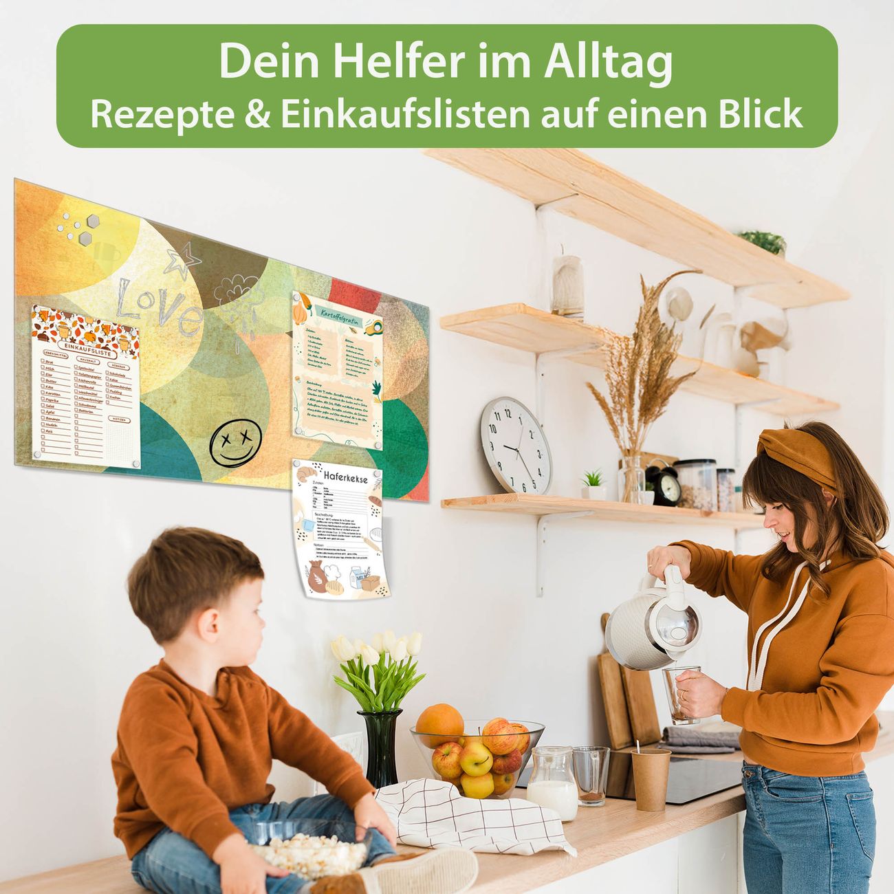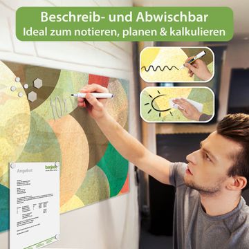Auf der glatten Glasoberfläche lassen sich Termine, Rezepte oder Notizen ganz einfach mit Kreidestiften festhalten und rückstandslos entfernen. Starke Neodym-Magnete halten Ihre wichtigsten Erinnerungen sicher an Ort und Stelle. So entsteht Ihre ganz persönliche Ideenwand - jeden Tag neu.