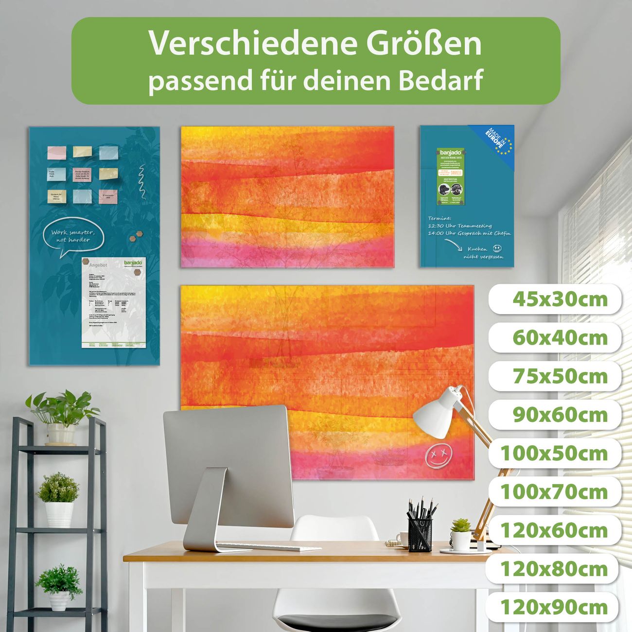 Jede Glas Magnettafel wird in unserer Werkstatt von Hand gefertigt und sorgfältig geprüft. So erhalten Sie ein echtes Qualitätsprodukt, das Funktion und Ästhetik perfekt vereint.?? Warum banjado?