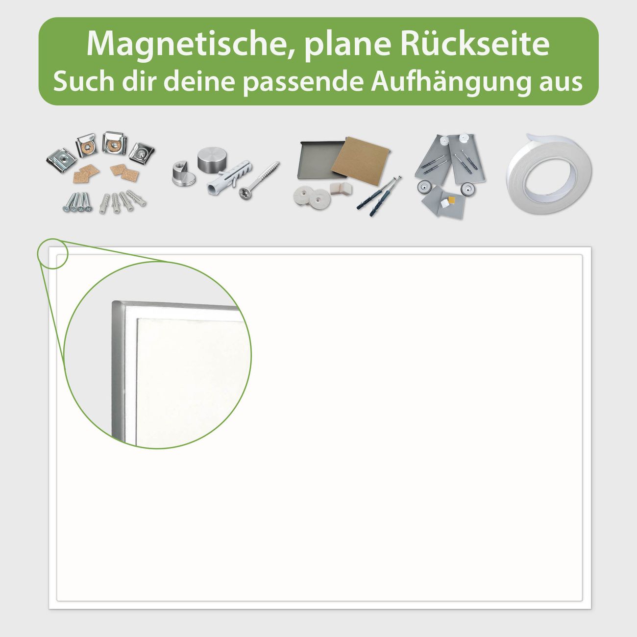 - Eigenschaften: beschreibbar, magnetisch, kratzfest