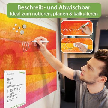 Die banjado Glas Magnettafel mit dem Motiv Motiv Aquarell verbindet Funktionalität mit Stil. Sie ersetzt das Zettelchaos durch klare Strukturen und bringt dabei eine warme, natürliche Atmosphäre in Ihr Zuhause. Ob im Büro, in der Küche oder im Eingangsbereich - dieses Design-Board zieht Blicke an und sorgt für Ordnung mit Charakter.