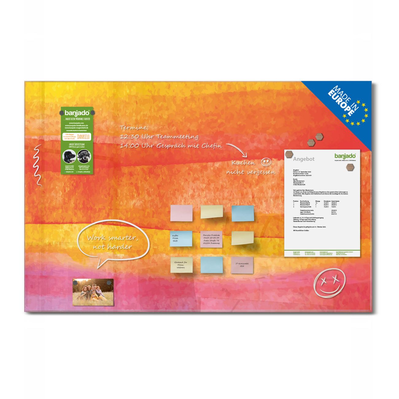Die banjado Glas Magnettafel mit dem Motiv Motiv Aquarell verbindet Funktionalität mit Stil. Sie ersetzt das Zettelchaos durch klare Strukturen und bringt dabei eine warme, natürliche Atmosphäre in Ihr Zuhause. Ob im Büro, in der Küche oder im Eingangsbereich - dieses Design-Board zieht Blicke an und sorgt für Ordnung mit Charakter.