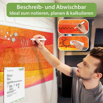 Die banjado Glas Magnettafel mit dem Motiv Motiv Aquarell verbindet Funktionalität mit Stil. Sie ersetzt das Zettelchaos durch klare Strukturen und bringt dabei eine warme, natürliche Atmosphäre in Ihr Zuhause. Ob im Büro, in der Küche oder im Eingangsbereich - dieses Design-Board zieht Blicke an und sorgt für Ordnung mit Charakter.