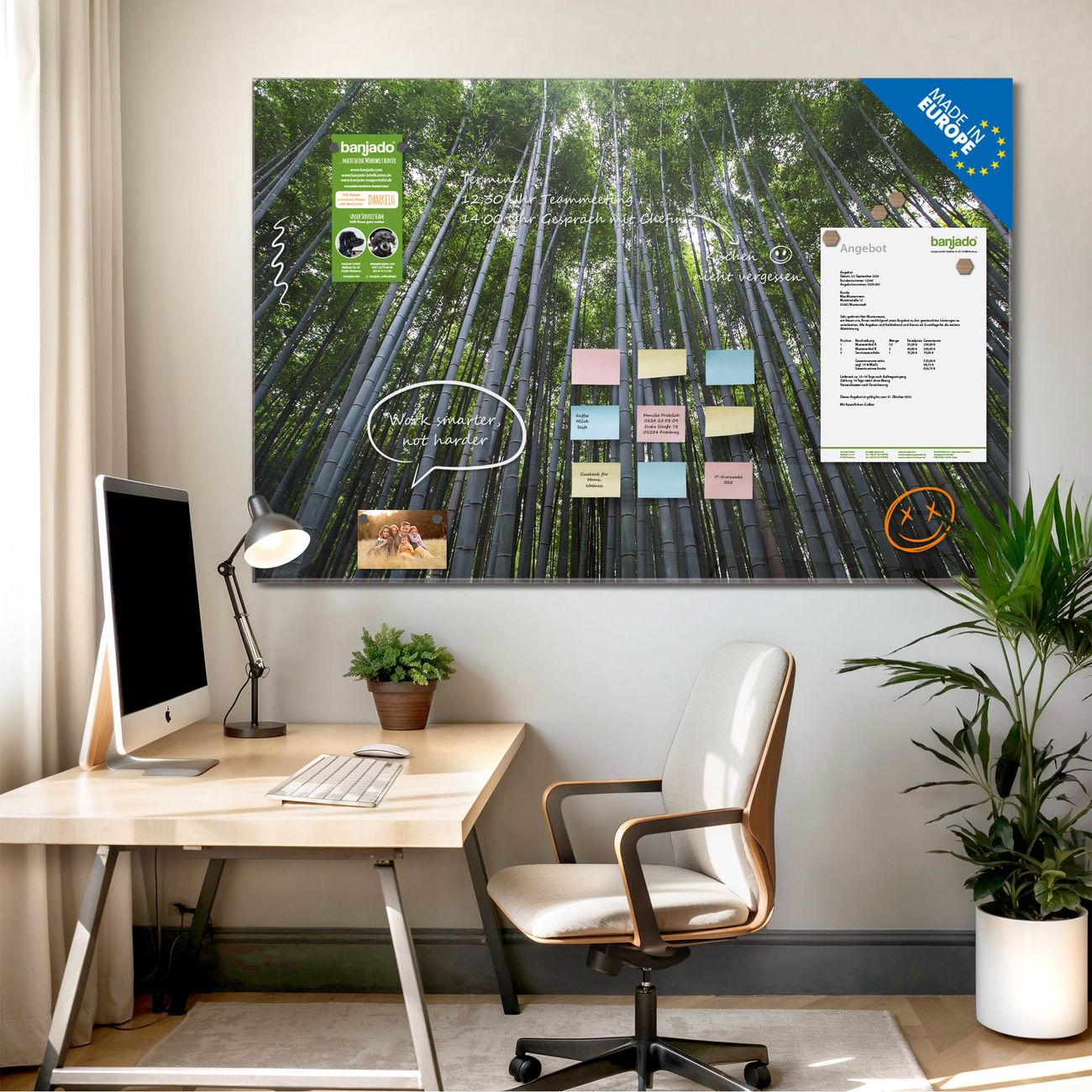 Jede Glas Magnettafel wird in unserer Werkstatt von Hand gefertigt und sorgfältig geprüft. So erhalten Sie ein echtes Qualitätsprodukt, das Funktion und Ästhetik perfekt vereint.?? Warum banjado?