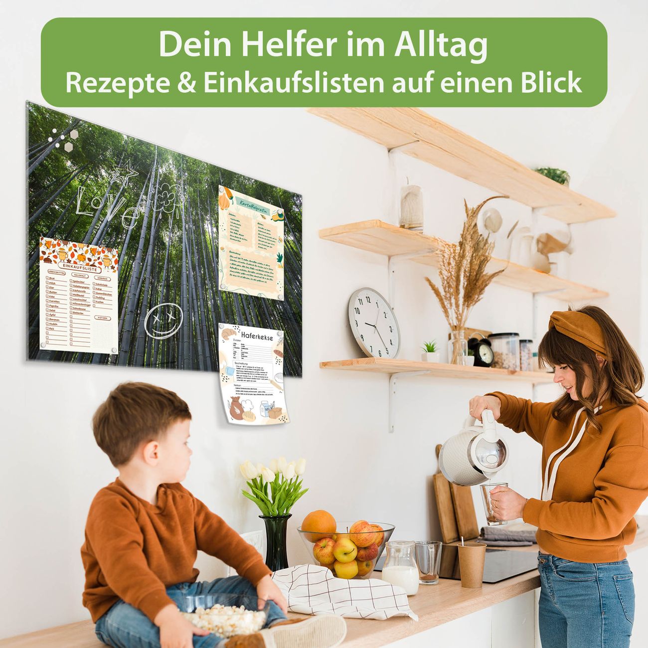 Ein Stück Design, das Ihren Alltag organisiert. Schreiben, heften, inspirieren - alles an einem Ort. Qualität, die man spürt. Montage leicht gemacht. Handwerk mit Herz - veredelt in Sachsen. Einzigartiges Design mit Motiv Motiv Bambuswald Beschreibbare Glasoberfläche, leicht zu reinigen Starke Magnetkraft durch Stahlrückwand Inklusive 4 Neodym-Magneten Flexible Montageoptionen Handveredelt in Sachsen - Qualität, die bleibt