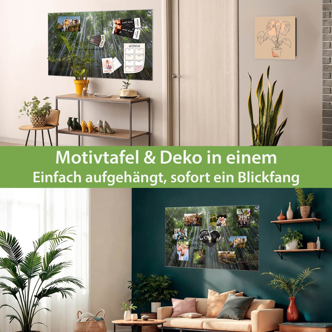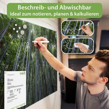 Die banjado Glas Magnettafel mit dem Motiv Motiv Bambuswald verbindet Funktionalität mit Stil. Sie ersetzt das Zettelchaos durch klare Strukturen und bringt dabei eine warme, natürliche Atmosphäre in Ihr Zuhause. Ob im Büro, in der Küche oder im Eingangsbereich - dieses Design-Board zieht Blicke an und sorgt für Ordnung mit Charakter.