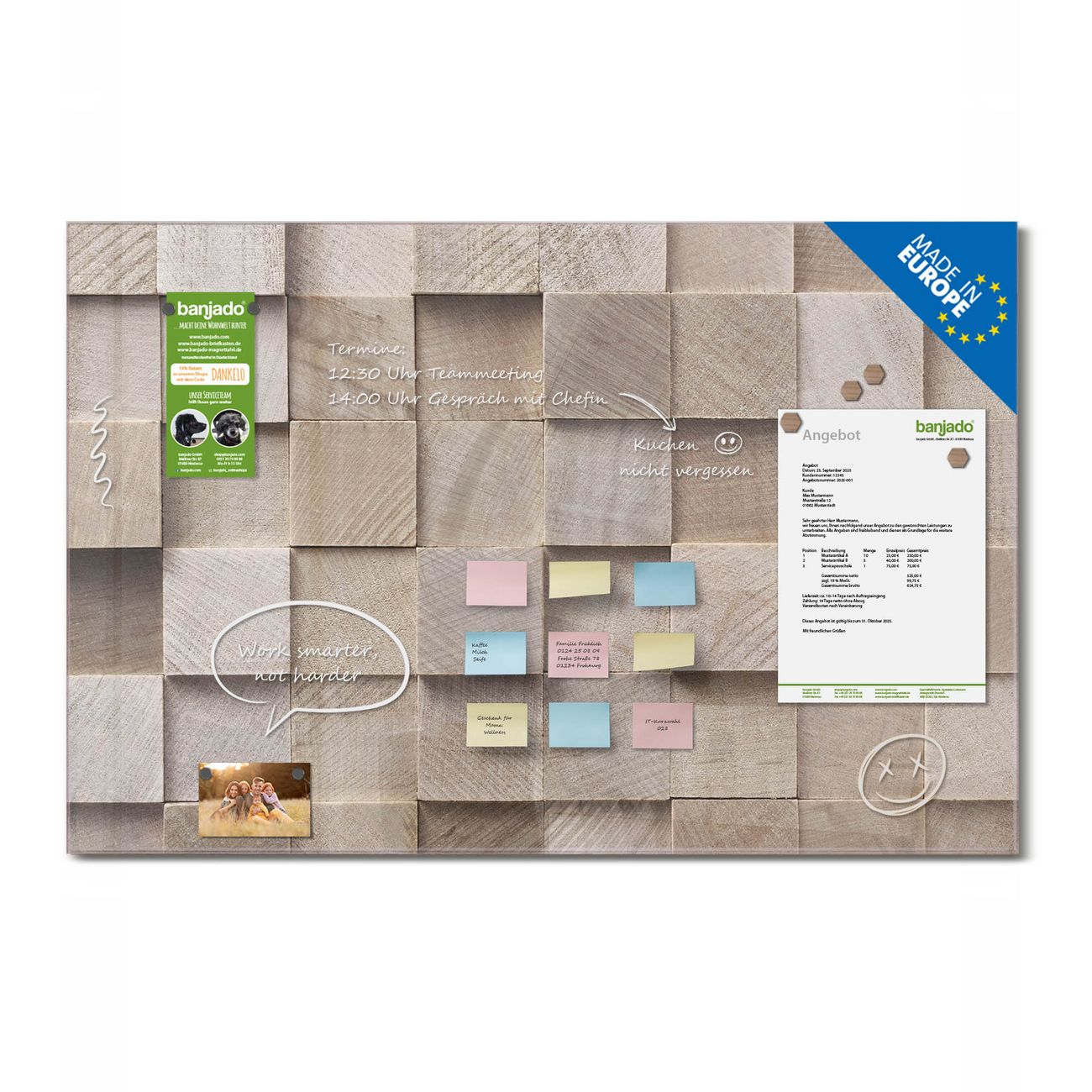 Die banjado Glas Magnettafel mit dem Motiv Motiv Bauklötze Relief verbindet Funktionalität mit Stil. Sie ersetzt das Zettelchaos durch klare Strukturen und bringt dabei eine warme, natürliche Atmosphäre in Ihr Zuhause. Ob im Büro, in der Küche oder im Eingangsbereich - dieses Design-Board zieht Blicke an und sorgt für Ordnung mit Charakter.