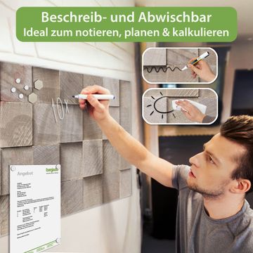 Die banjado Glas Magnettafel mit dem Motiv Motiv Bauklötze Relief verbindet Funktionalität mit Stil. Sie ersetzt das Zettelchaos durch klare Strukturen und bringt dabei eine warme, natürliche Atmosphäre in Ihr Zuhause. Ob im Büro, in der Küche oder im Eingangsbereich - dieses Design-Board zieht Blicke an und sorgt für Ordnung mit Charakter.