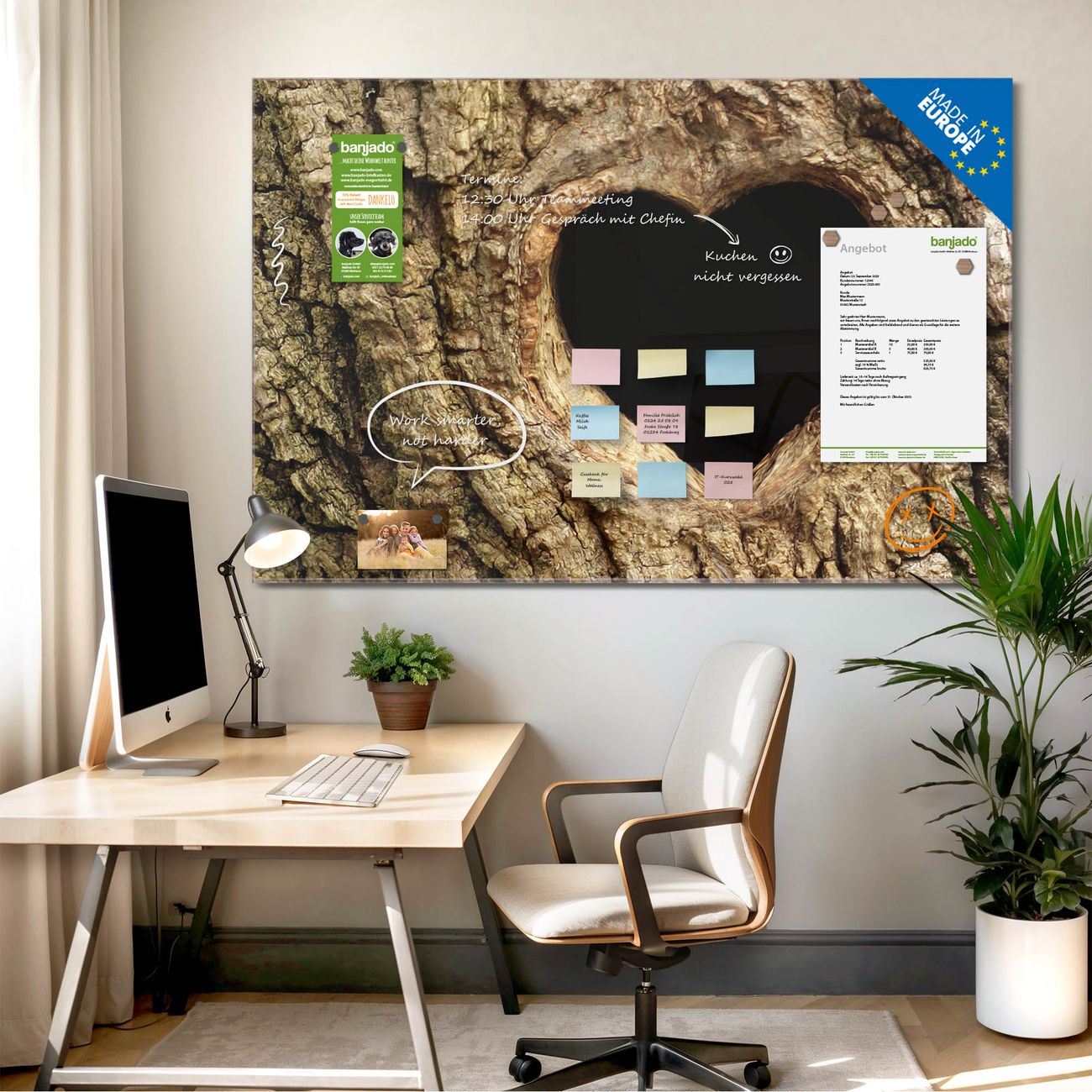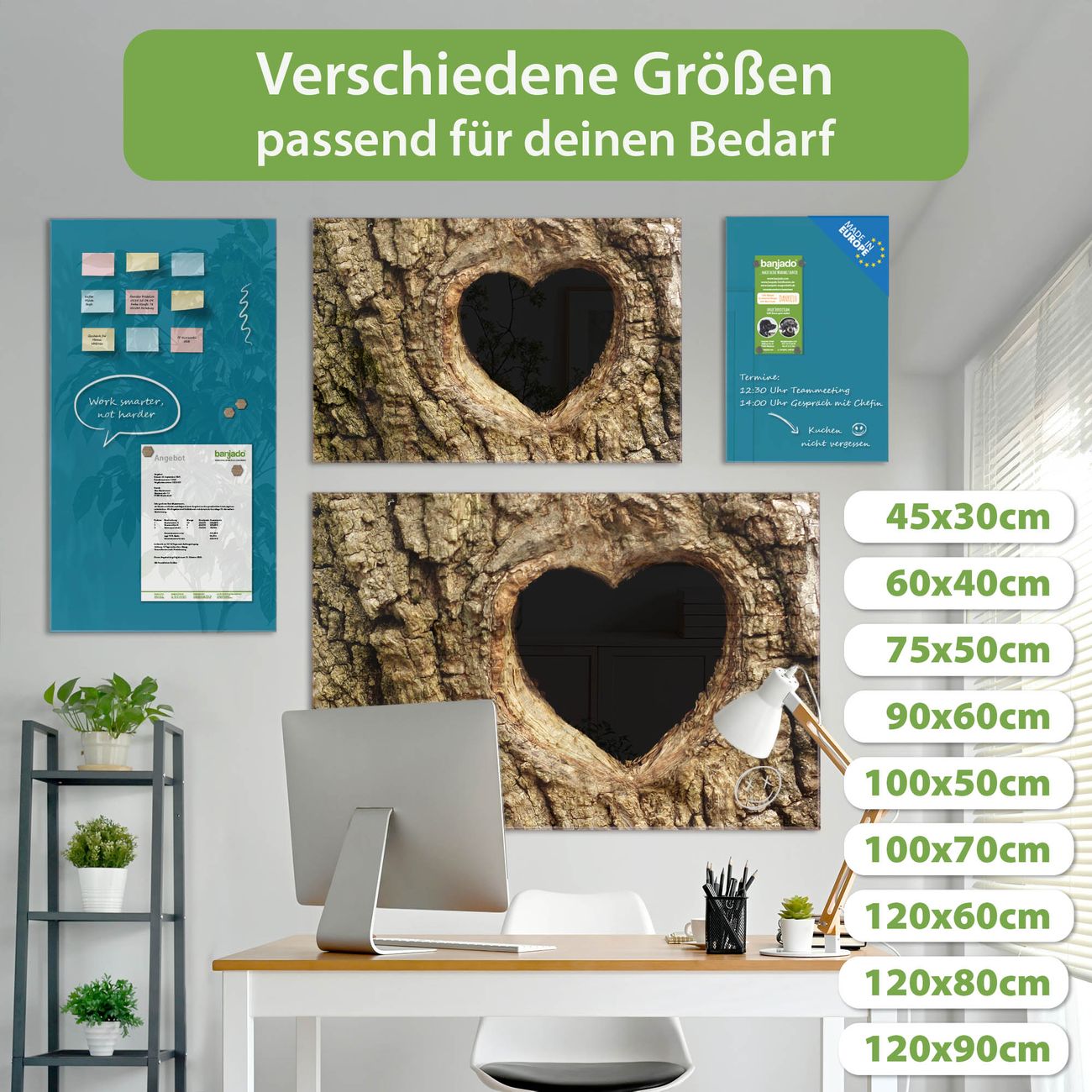 Jede Glas Magnettafel wird in unserer Werkstatt von Hand gefertigt und sorgfältig geprüft. So erhalten Sie ein echtes Qualitätsprodukt, das Funktion und Ästhetik perfekt vereint.?? Warum banjado?