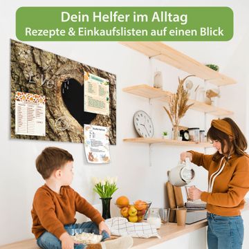 Die banjado Glas Magnettafel mit dem Motiv Motiv Baumherz verbindet Funktionalität mit Stil. Sie ersetzt das Zettelchaos durch klare Strukturen und bringt dabei eine warme, natürliche Atmosphäre in Ihr Zuhause. Ob im Büro, in der Küche oder im Eingangsbereich - dieses Design-Board zieht Blicke an und sorgt für Ordnung mit Charakter.