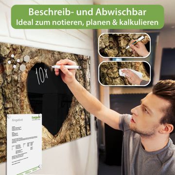 Die banjado Glas Magnettafel mit dem Motiv Motiv Baumherz verbindet Funktionalität mit Stil. Sie ersetzt das Zettelchaos durch klare Strukturen und bringt dabei eine warme, natürliche Atmosphäre in Ihr Zuhause. Ob im Büro, in der Küche oder im Eingangsbereich - dieses Design-Board zieht Blicke an und sorgt für Ordnung mit Charakter.