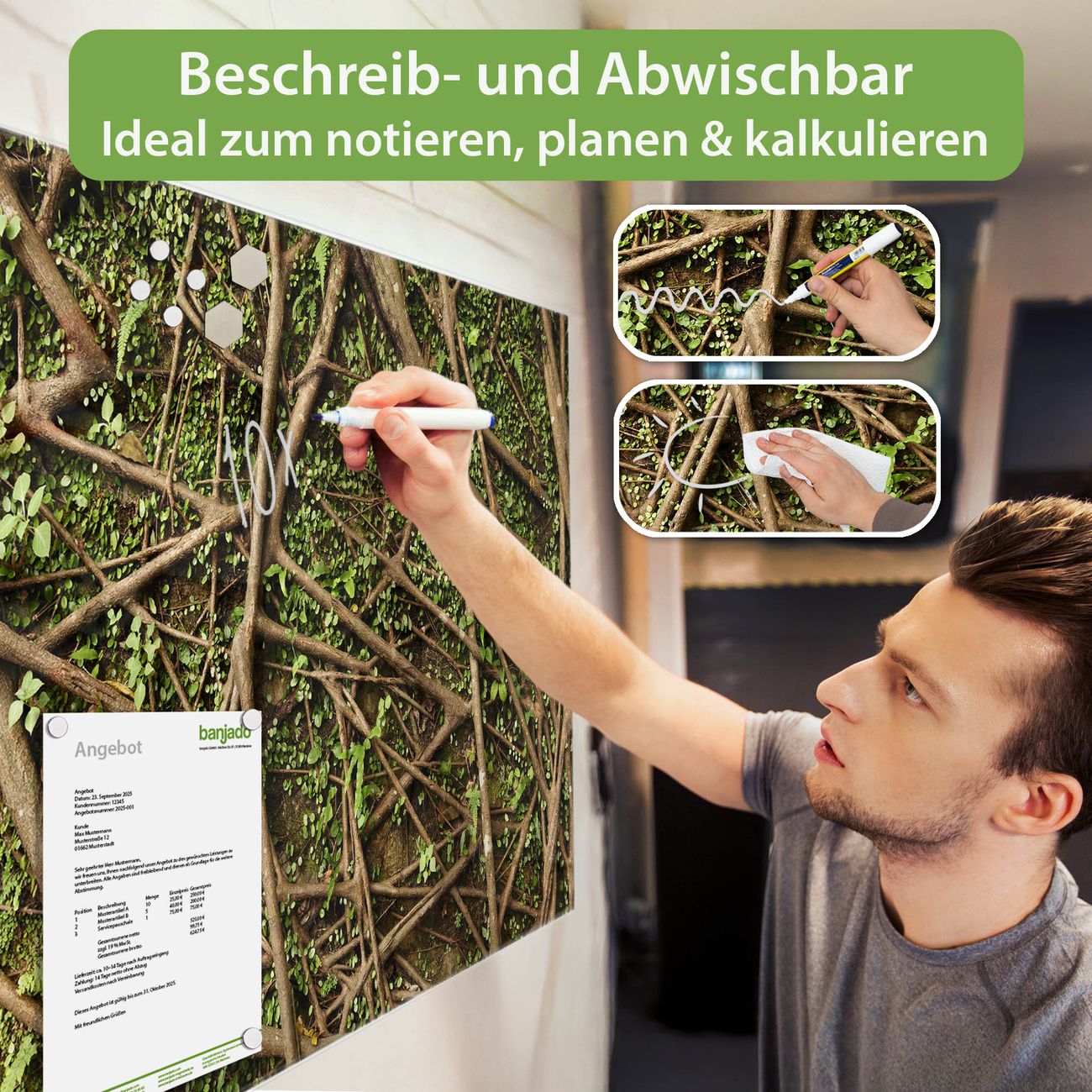 Die banjado Glas Magnettafel mit dem Motiv Motiv Baumwurzel verbindet Funktionalität mit Stil. Sie ersetzt das Zettelchaos durch klare Strukturen und bringt dabei eine warme, natürliche Atmosphäre in Ihr Zuhause. Ob im Büro, in der Küche oder im Eingangsbereich - dieses Design-Board zieht Blicke an und sorgt für Ordnung mit Charakter.