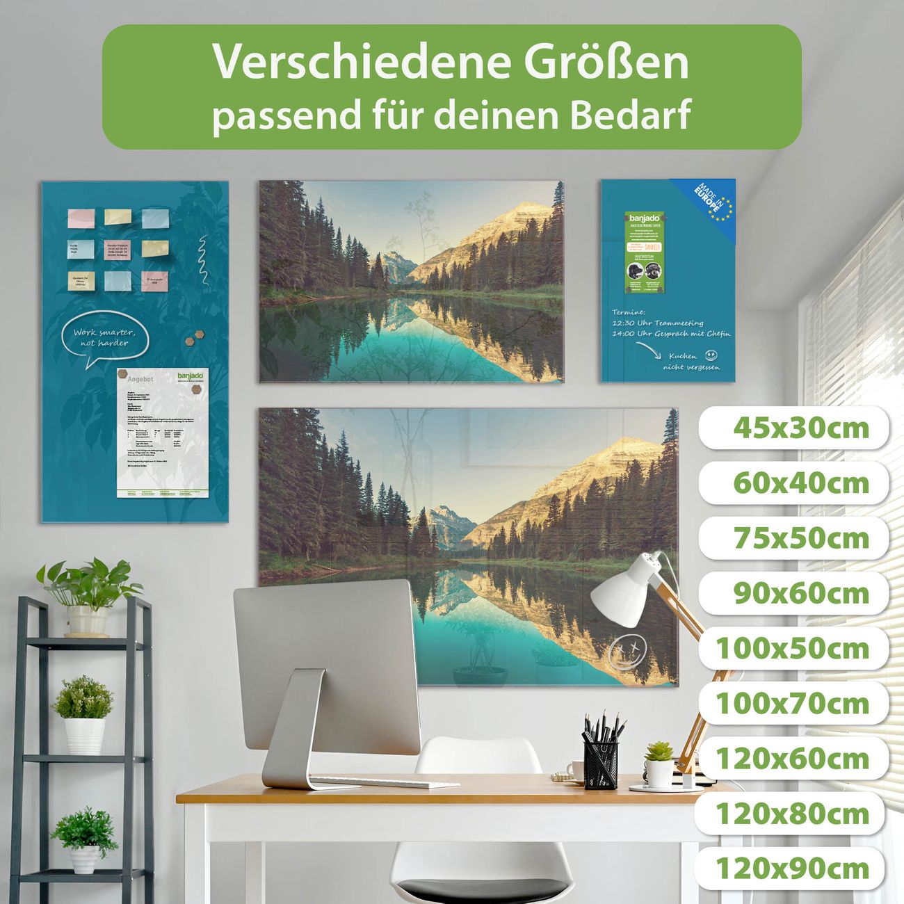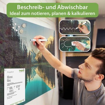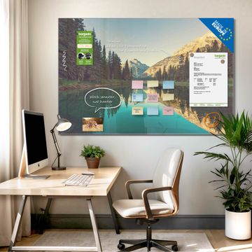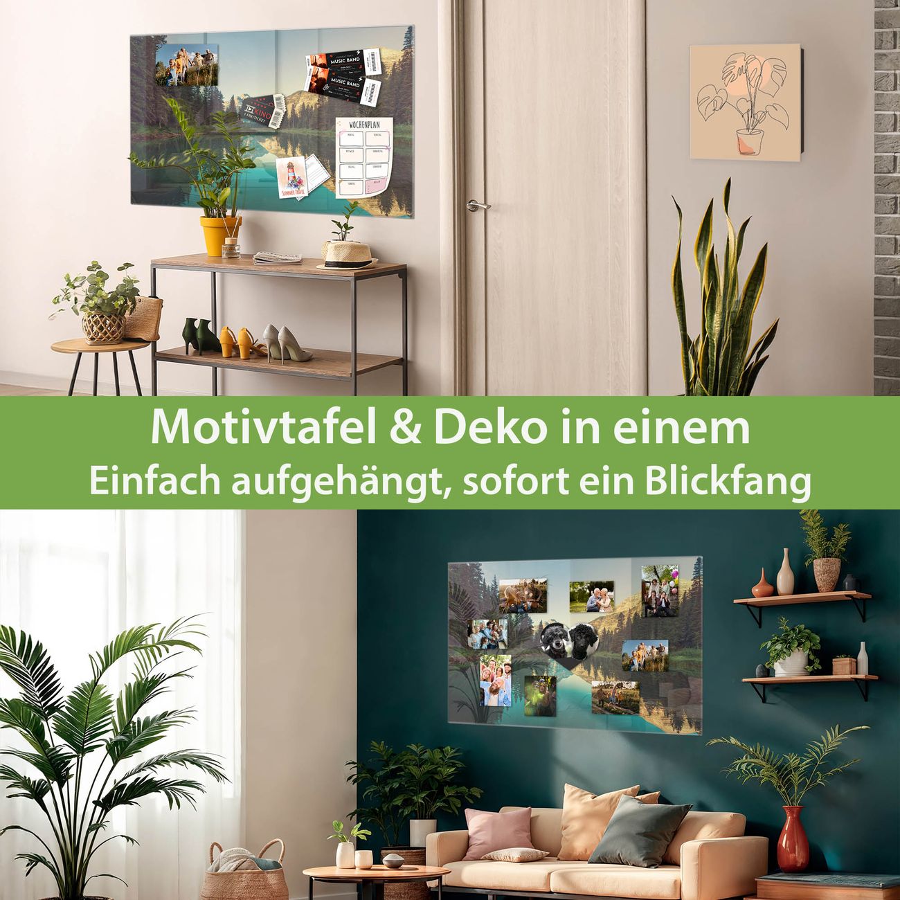 Die banjado Glas Magnettafel mit dem Motiv Motiv Bergsee verbindet Funktionalität mit Stil. Sie ersetzt das Zettelchaos durch klare Strukturen und bringt dabei eine warme, natürliche Atmosphäre in Ihr Zuhause. Ob im Büro, in der Küche oder im Eingangsbereich - dieses Design-Board zieht Blicke an und sorgt für Ordnung mit Charakter.