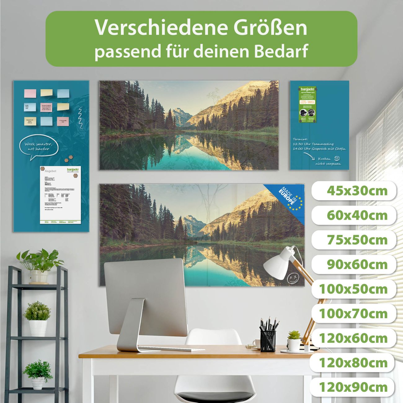 Ein Stück Design, das Ihren Alltag organisiert. Schreiben, heften, inspirieren - alles an einem Ort. Qualität, die man spürt. Montage leicht gemacht. Handwerk mit Herz - veredelt in Sachsen. Einzigartiges Design mit Motiv Motiv Bergsee Beschreibbare Glasoberfläche, leicht zu reinigen Starke Magnetkraft durch Stahlrückwand Inklusive 4 Neodym-Magneten Flexible Montageoptionen Handveredelt in Sachsen - Qualität, die bleibt