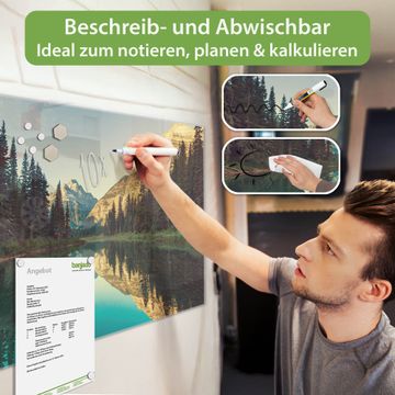 Die banjado Glas Magnettafel mit dem Motiv Motiv Bergsee verbindet Funktionalität mit Stil. Sie ersetzt das Zettelchaos durch klare Strukturen und bringt dabei eine warme, natürliche Atmosphäre in Ihr Zuhause. Ob im Büro, in der Küche oder im Eingangsbereich - dieses Design-Board zieht Blicke an und sorgt für Ordnung mit Charakter.