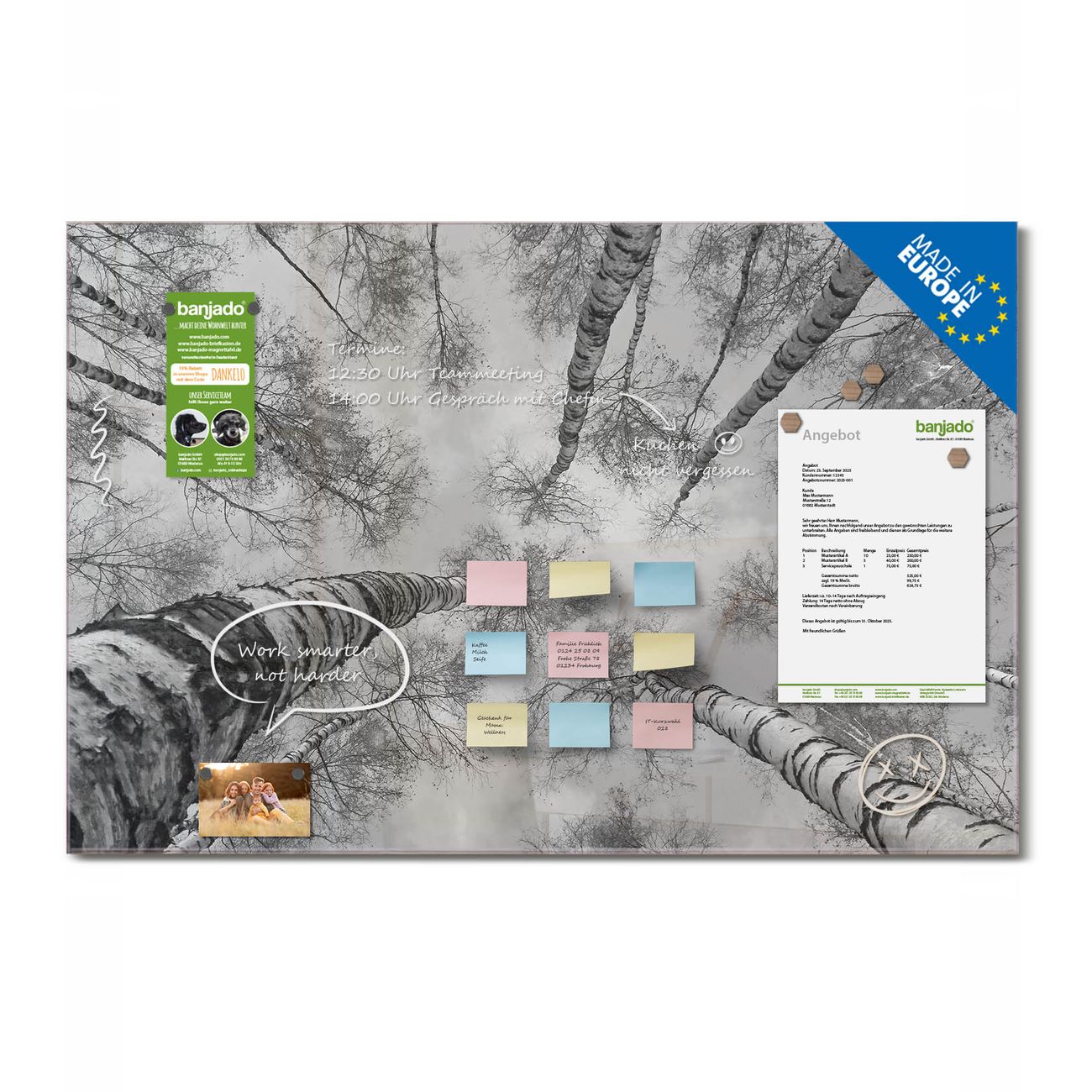 Glas Magnettafel im Querformat Motiv Birkenwald