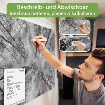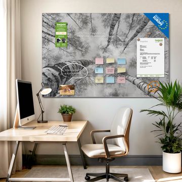 Die banjado Glas Magnettafel mit dem Motiv Motiv Birkenwald verbindet Funktionalität mit Stil. Sie ersetzt das Zettelchaos durch klare Strukturen und bringt dabei eine warme, natürliche Atmosphäre in Ihr Zuhause. Ob im Büro, in der Küche oder im Eingangsbereich - dieses Design-Board zieht Blicke an und sorgt für Ordnung mit Charakter.
