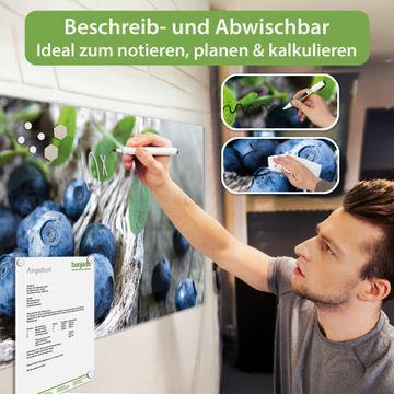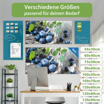 Die banjado Glas Magnettafel mit dem Motiv Motiv Blaubeeren verbindet Funktionalität mit Stil. Sie ersetzt das Zettelchaos durch klare Strukturen und bringt dabei eine warme, natürliche Atmosphäre in Ihr Zuhause. Ob im Büro, in der Küche oder im Eingangsbereich - dieses Design-Board zieht Blicke an und sorgt für Ordnung mit Charakter.