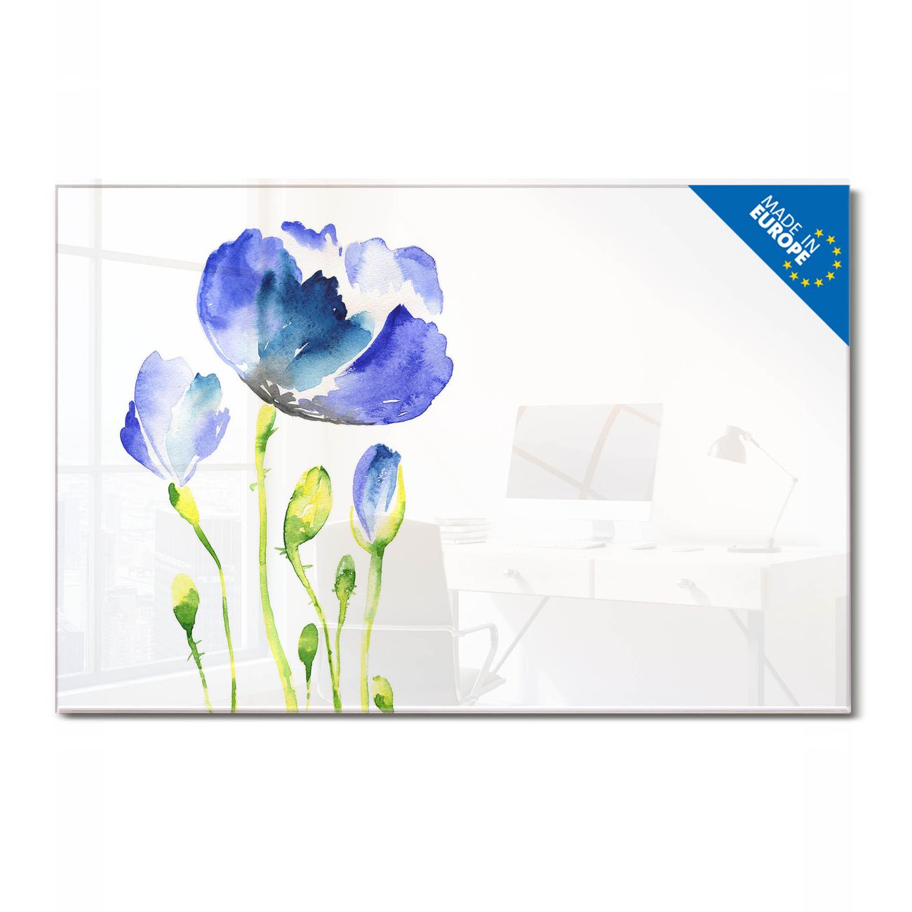 Glas Magnettafel im Querformat Motiv Blauer Mohn