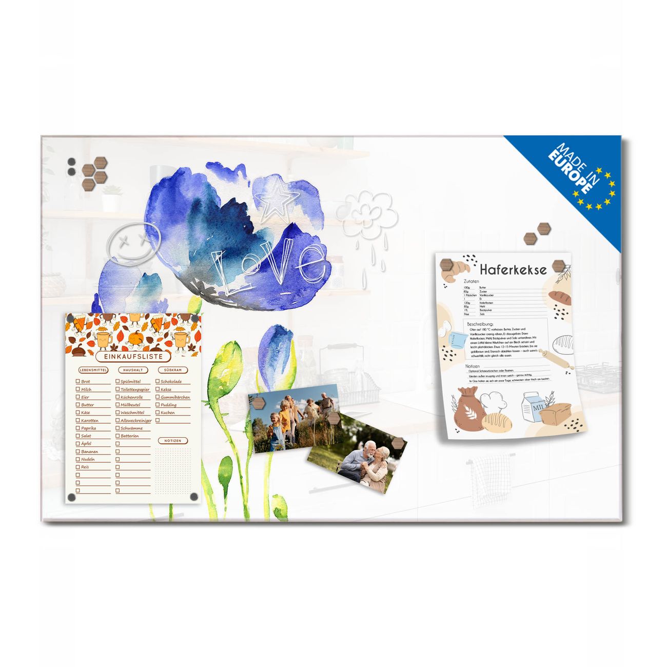 Ein Stück Design, das Ihren Alltag organisiert. Schreiben, heften, inspirieren - alles an einem Ort. Qualität, die man spürt. Montage leicht gemacht. Handwerk mit Herz - veredelt in Sachsen. Einzigartiges Design mit Motiv Motiv Blauer Mohn Beschreibbare Glasoberfläche, leicht zu reinigen Starke Magnetkraft durch Stahlrückwand Inklusive 4 Neodym-Magneten Flexible Montageoptionen Handveredelt in Sachsen - Qualität, die bleibt