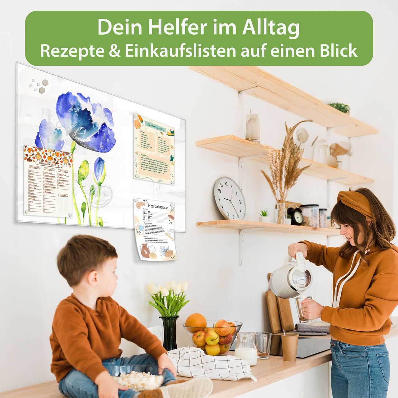 Auf der glatten Glasoberfläche lassen sich Termine, Rezepte oder Notizen ganz einfach mit Kreidestiften festhalten und rückstandslos entfernen. Starke Neodym-Magnete halten Ihre wichtigsten Erinnerungen sicher an Ort und Stelle. So entsteht Ihre ganz persönliche Ideenwand - jeden Tag neu.