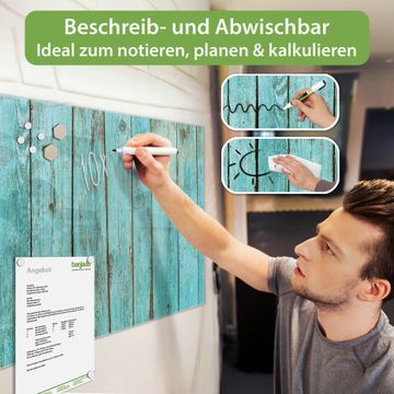 Die banjado Glas Magnettafel mit dem Motiv Motiv Blaues Holz verbindet Funktionalität mit Stil. Sie ersetzt das Zettelchaos durch klare Strukturen und bringt dabei eine warme, natürliche Atmosphäre in Ihr Zuhause. Ob im Büro, in der Küche oder im Eingangsbereich - dieses Design-Board zieht Blicke an und sorgt für Ordnung mit Charakter.
