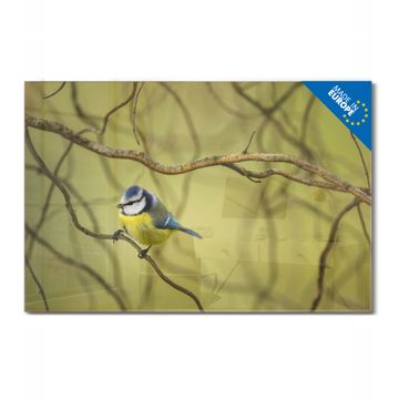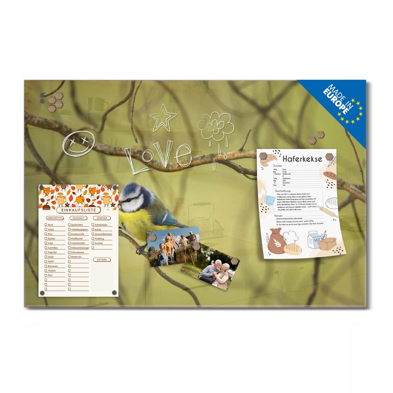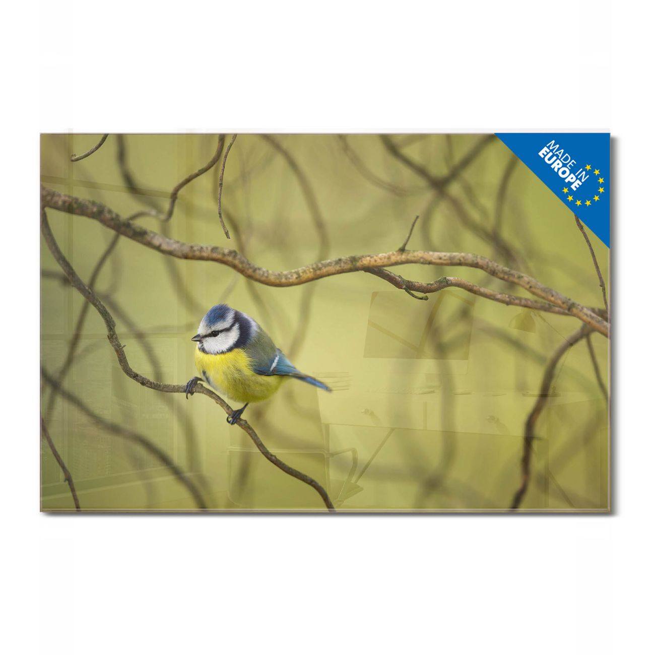 Glas Magnettafel im Querformat Motiv Blaumeise im Baum