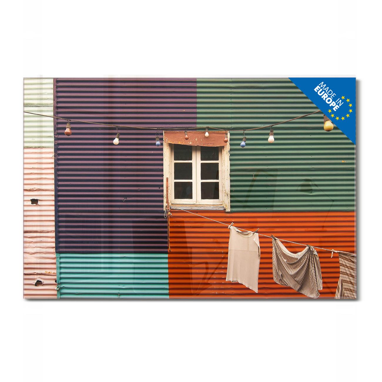 Glas Magnettafel im Querformat Motiv Buntes Haus
