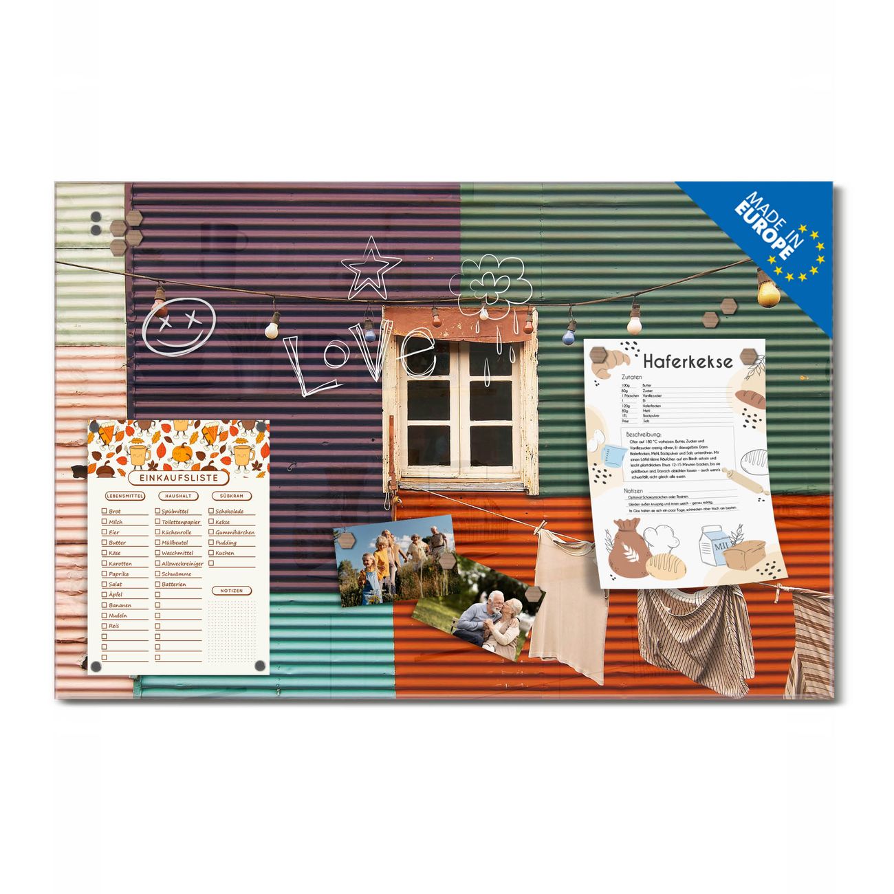 Ein Stück Design, das Ihren Alltag organisiert. Schreiben, heften, inspirieren - alles an einem Ort. Qualität, die man spürt. Montage leicht gemacht. Handwerk mit Herz - veredelt in Sachsen. Einzigartiges Design mit Motiv Motiv Buntes Haus Beschreibbare Glasoberfläche, leicht zu reinigen Starke Magnetkraft durch Stahlrückwand Inklusive 4 Neodym-Magneten Flexible Montageoptionen Handveredelt in Sachsen - Qualität, die bleibt